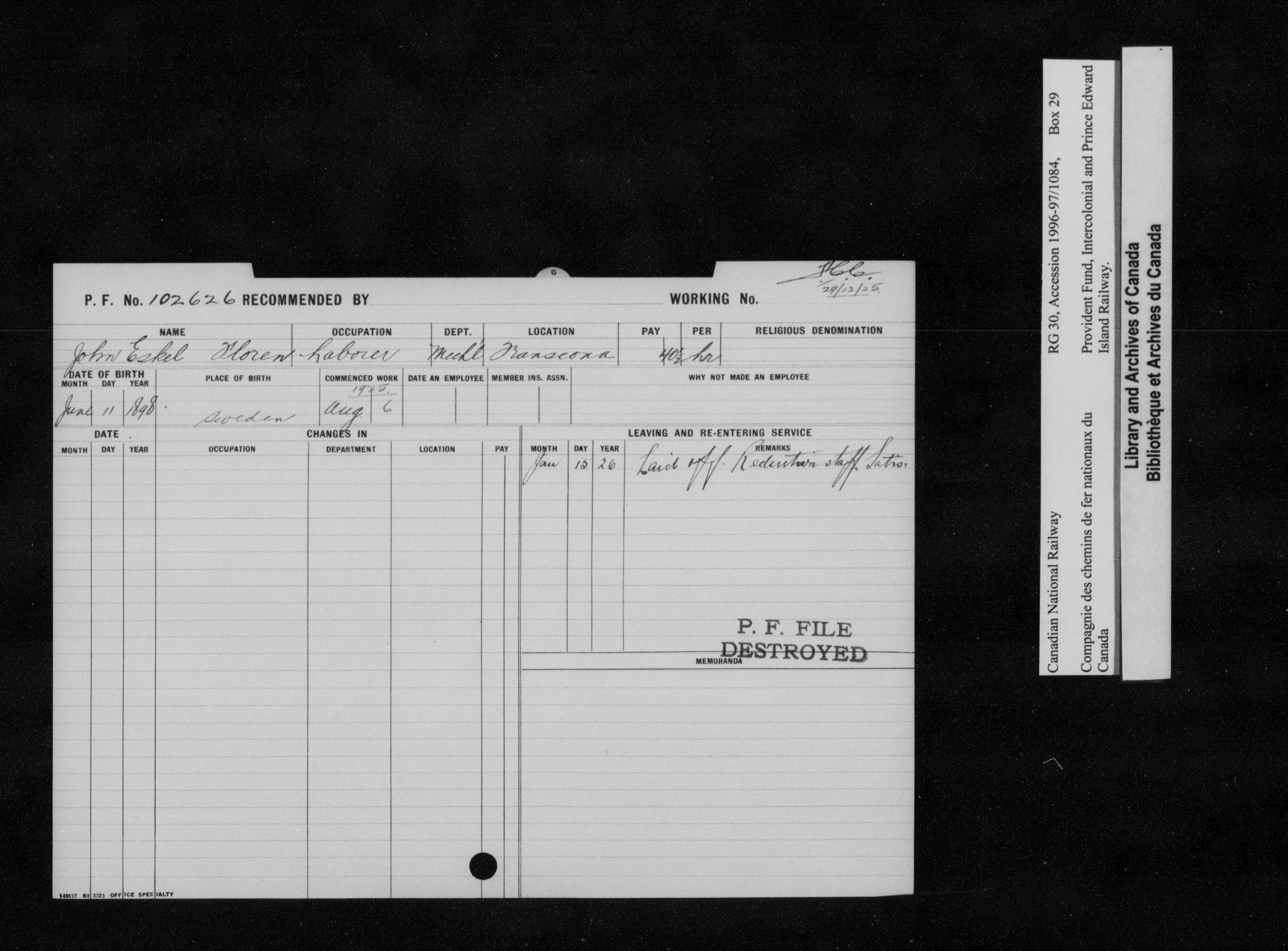 Intercolonial and Prince Edward Island Railways Employees' Provident Fund, 1907-1959 - 21782