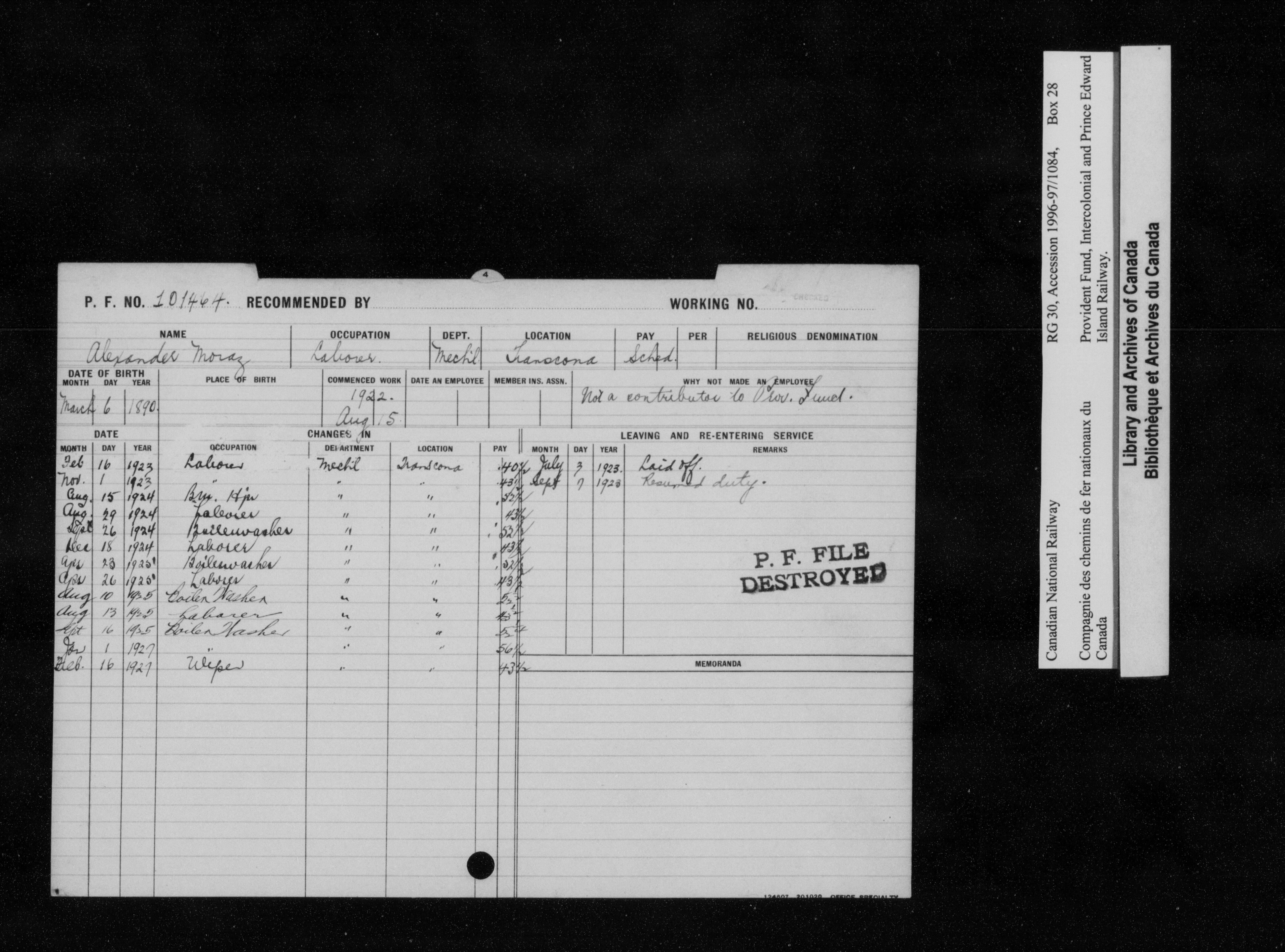 Intercolonial and Prince Edward Island Railways Employees' Provident Fund, 1907-1959 - 21782