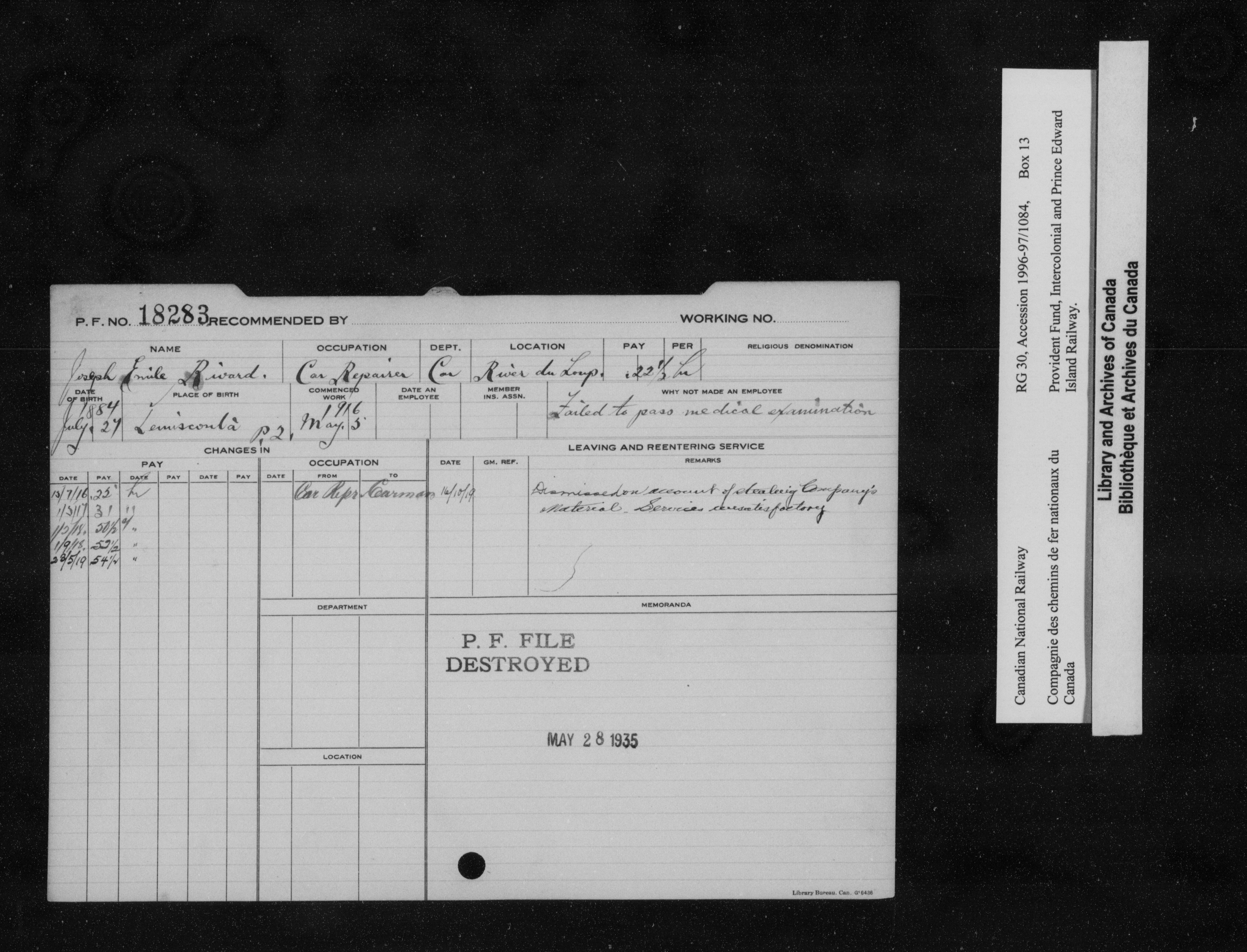 Intercolonial and Prince Edward Island Railways Employees' Provident Fund, 1907-1959 - 21785