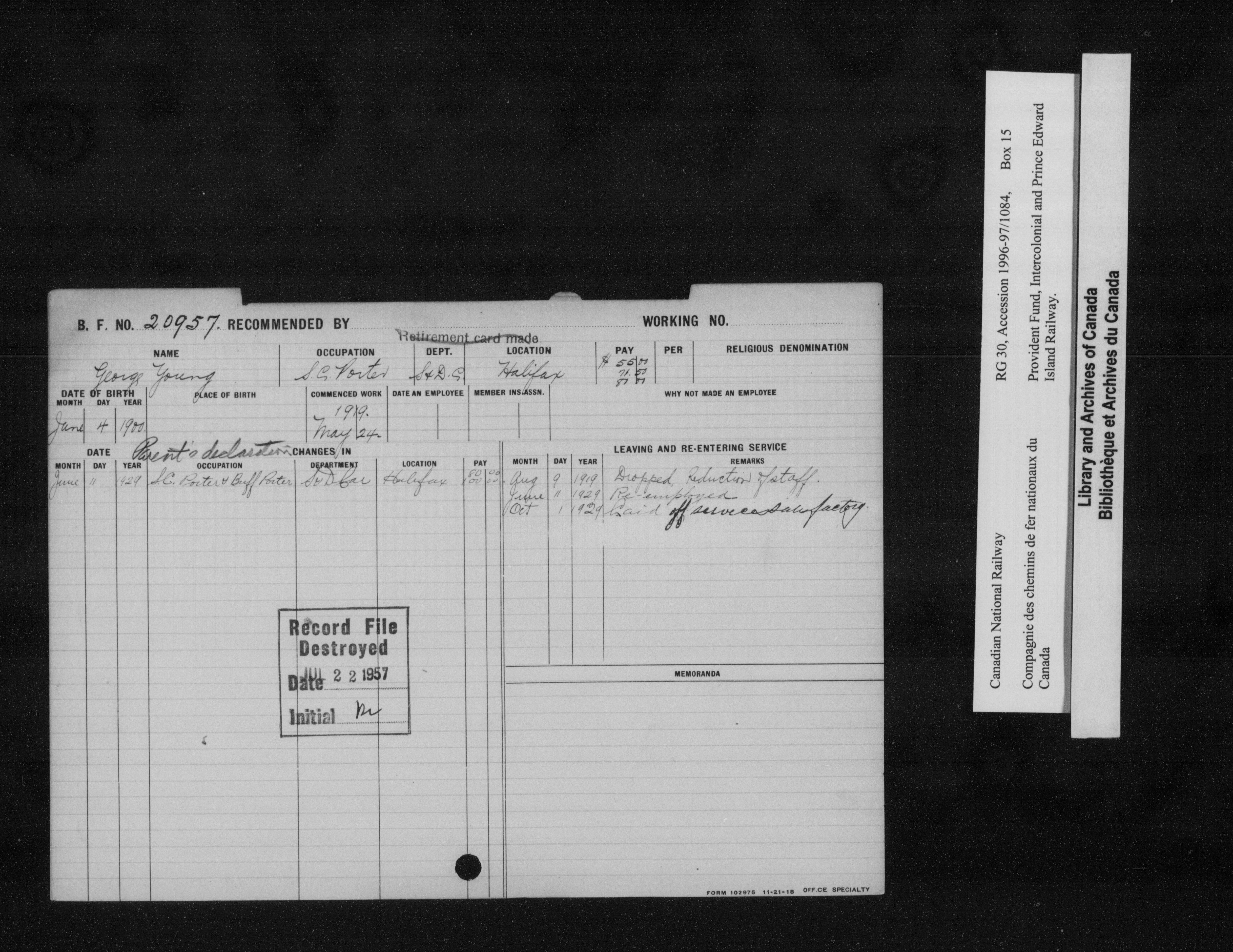 Intercolonial and Prince Edward Island Railways Employees' Provident Fund, 1907-1959 - 21786