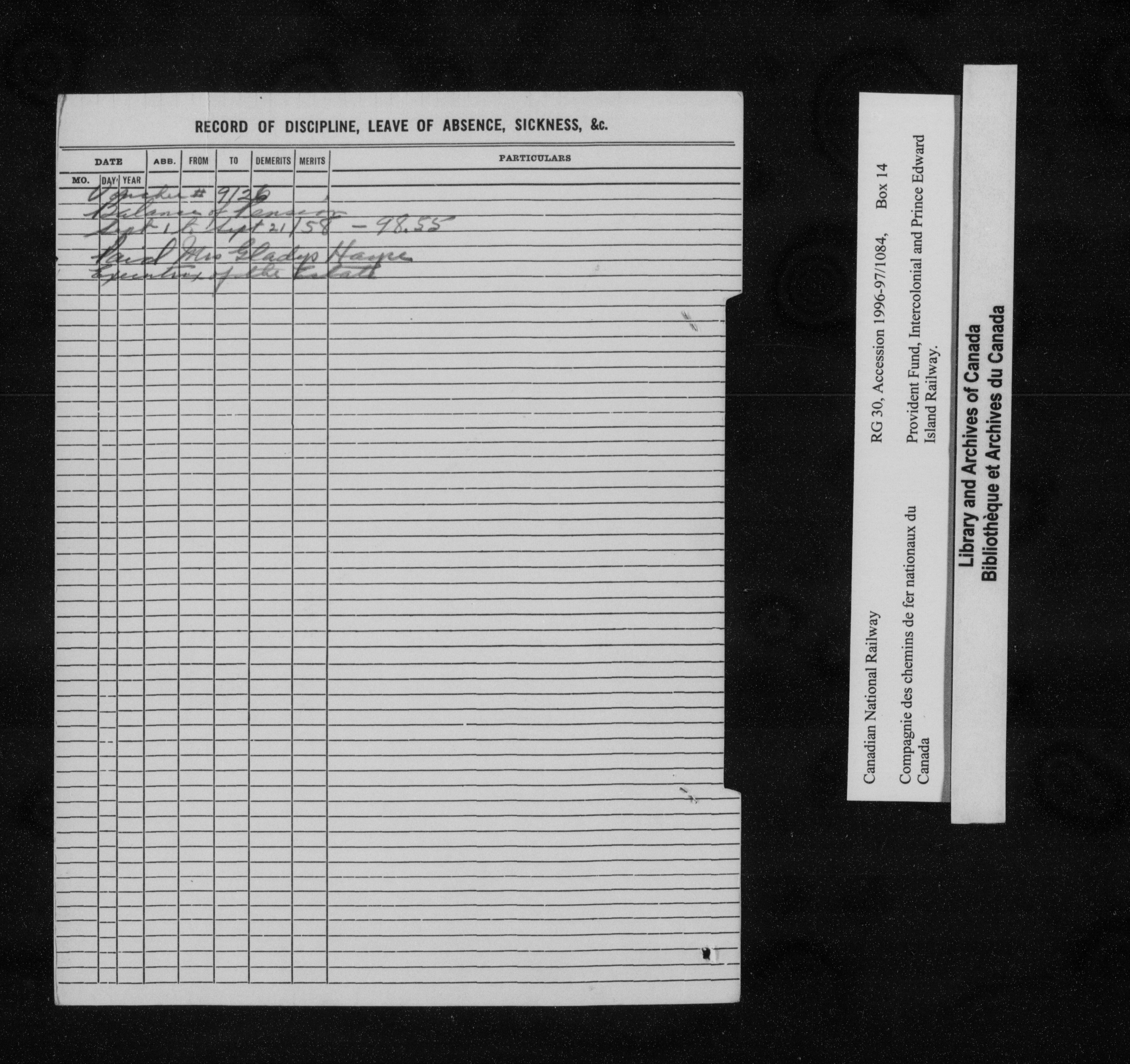 Intercolonial and Prince Edward Island Railways Employees' Provident Fund, 1907-1959 - 21786