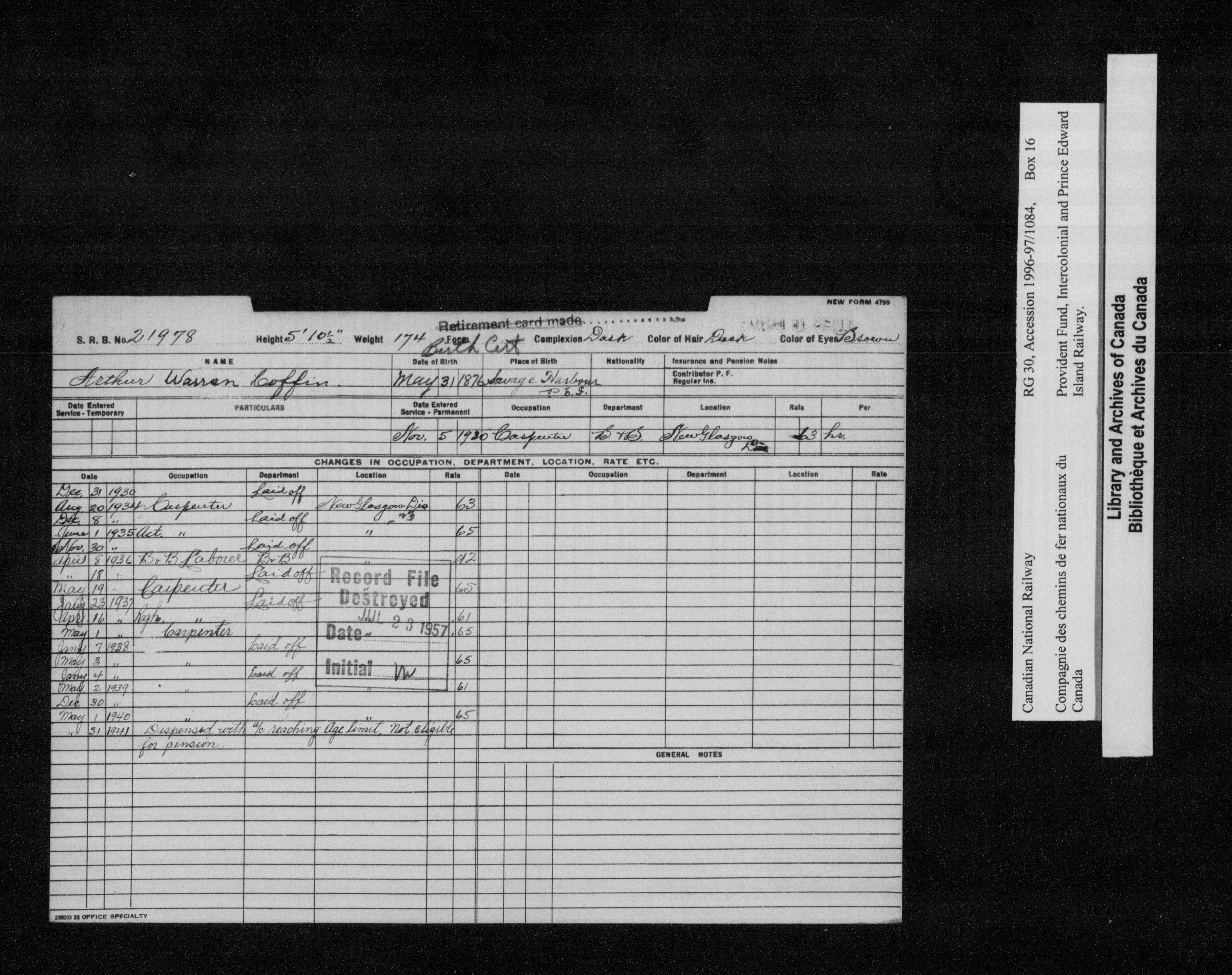 Intercolonial and Prince Edward Island Railways Employees' Provident Fund, 1907-1959 - 21787