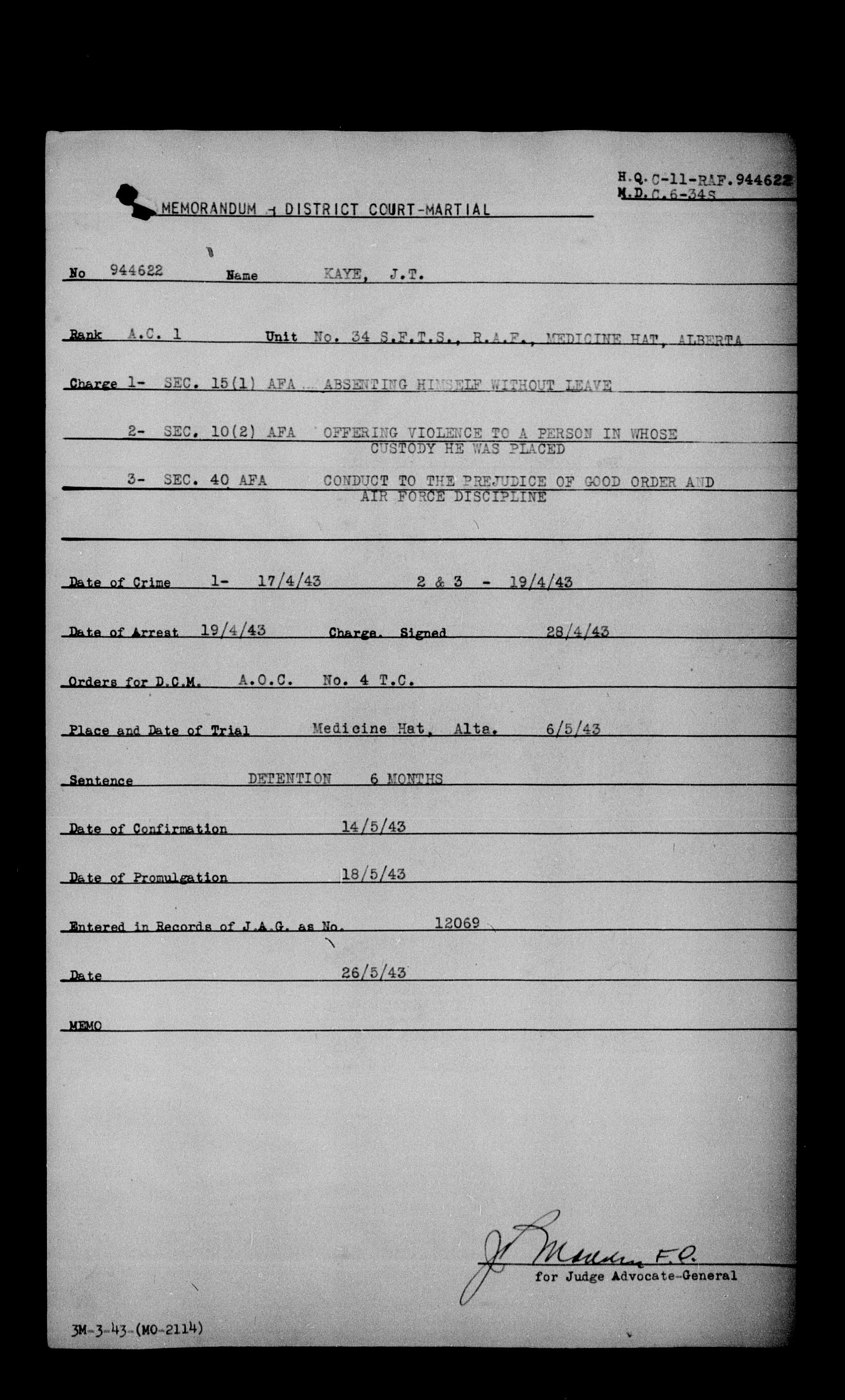 Royal Canadian Air Force courts martial [1939-1945] - 21791