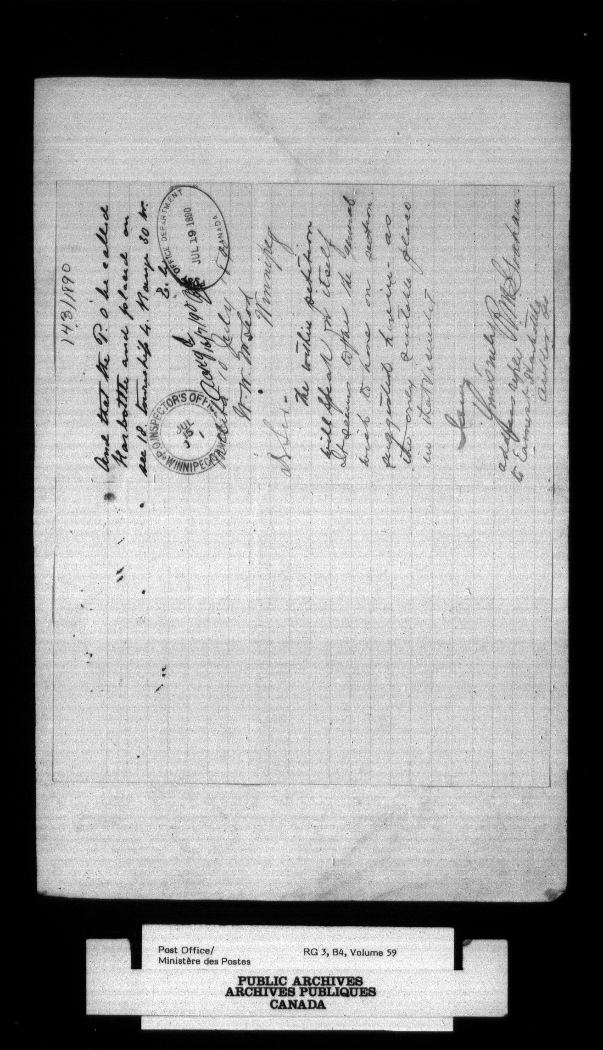 Post Office Department, Divisional Inspectors : Reports - 2180