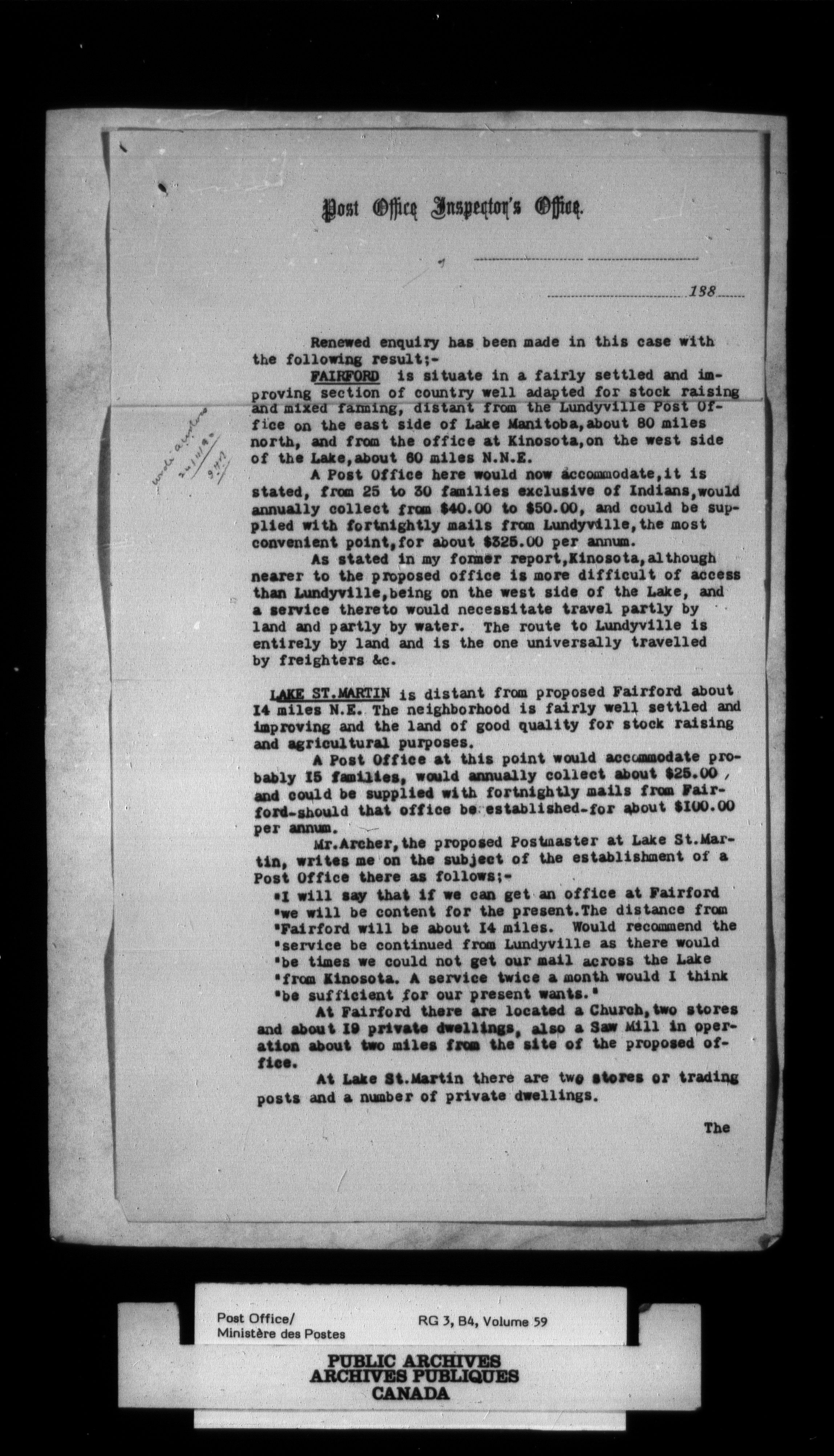 Post Office Department, Divisional Inspectors : Reports - 2180