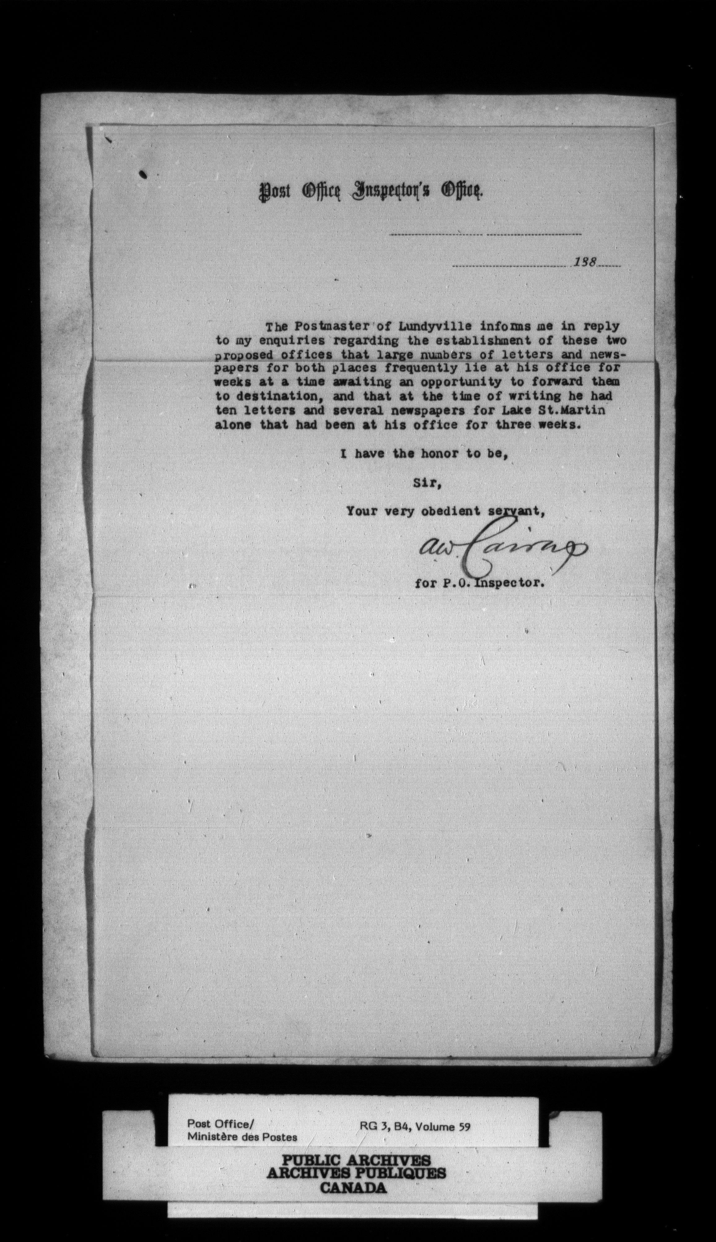 Post Office Department, Divisional Inspectors : Reports - 2180