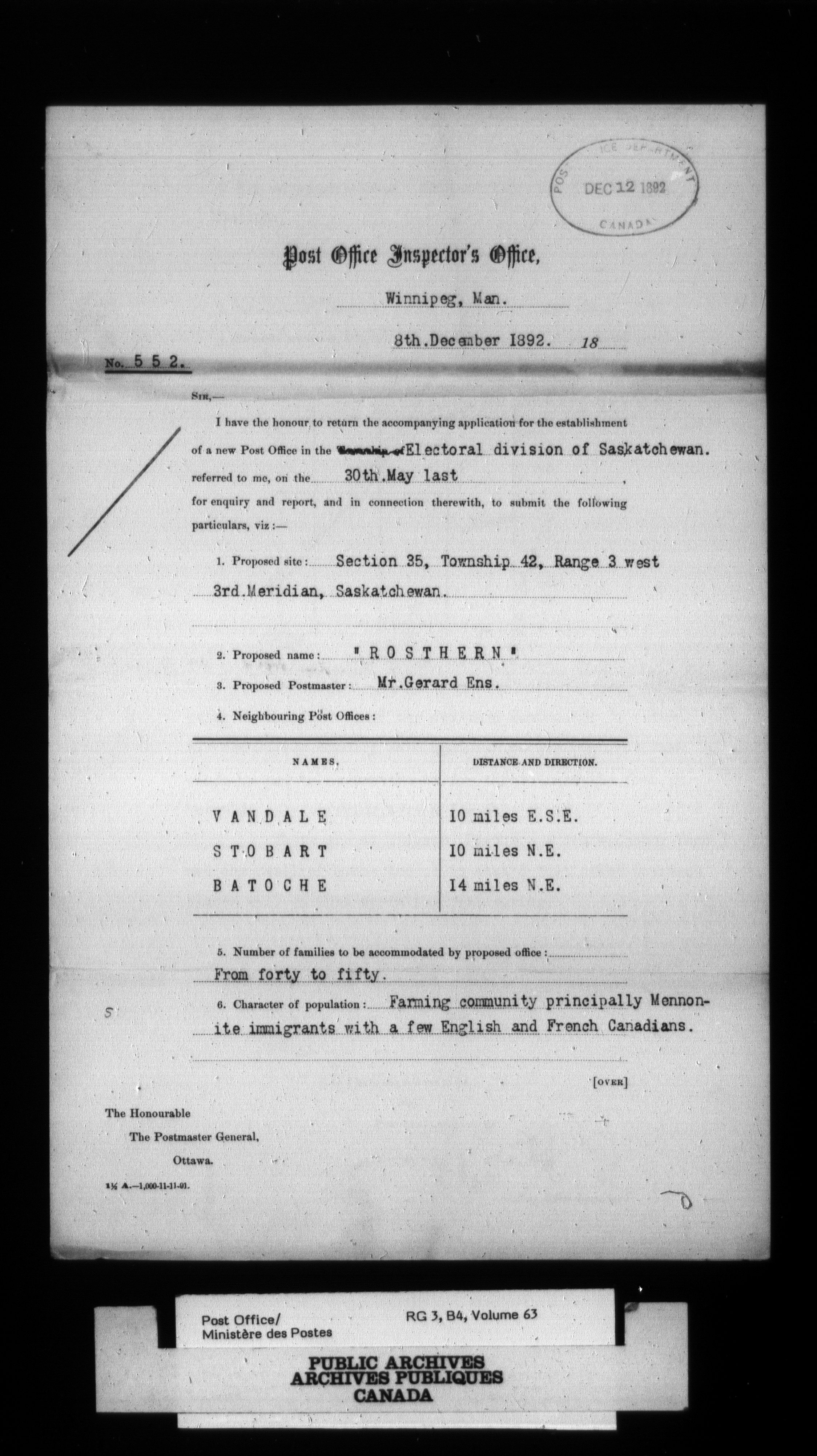 Post Office Department, Divisional Inspectors : Reports - 2184