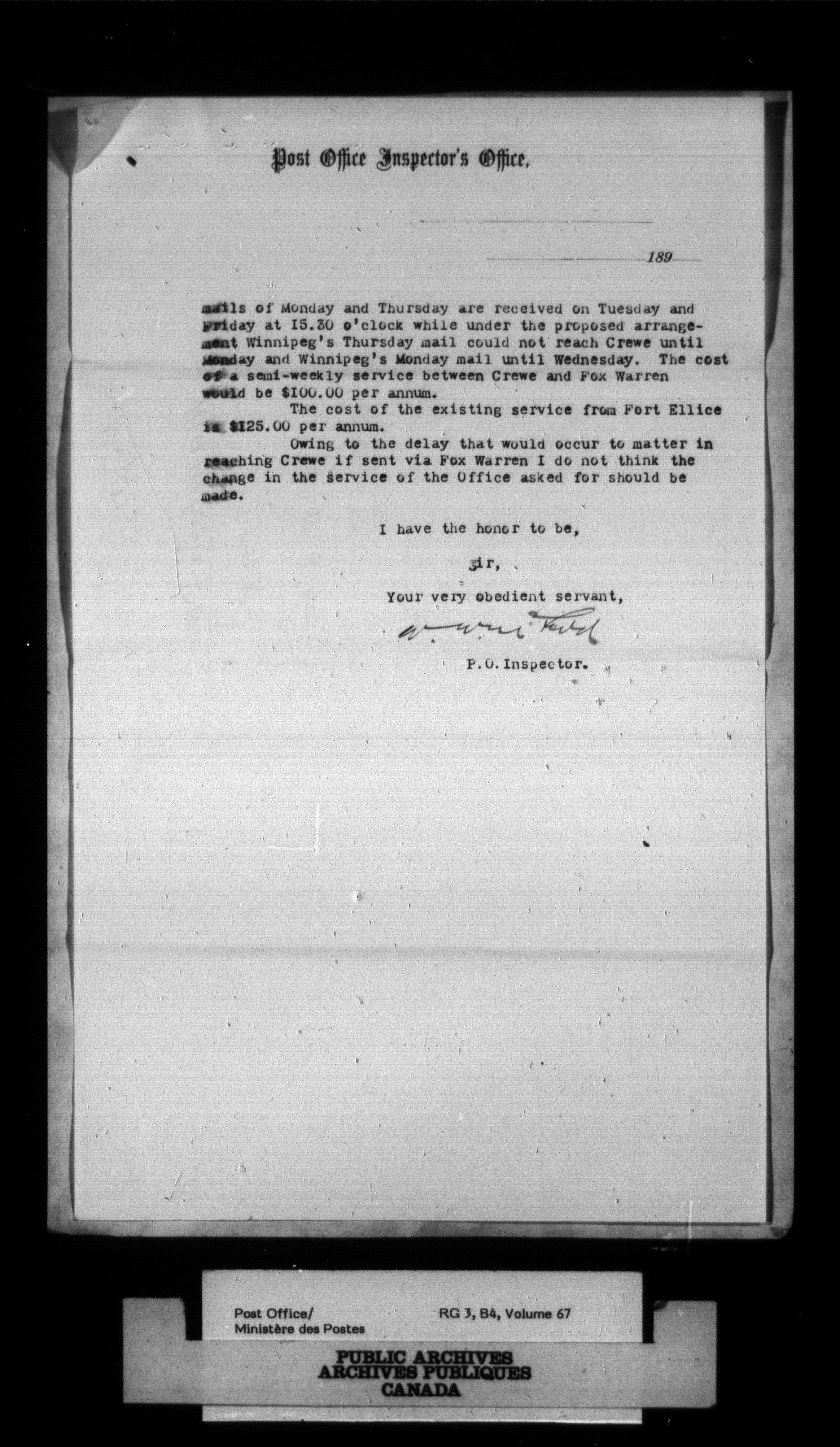 Post Office Department, Divisional Inspectors : Reports - 2186