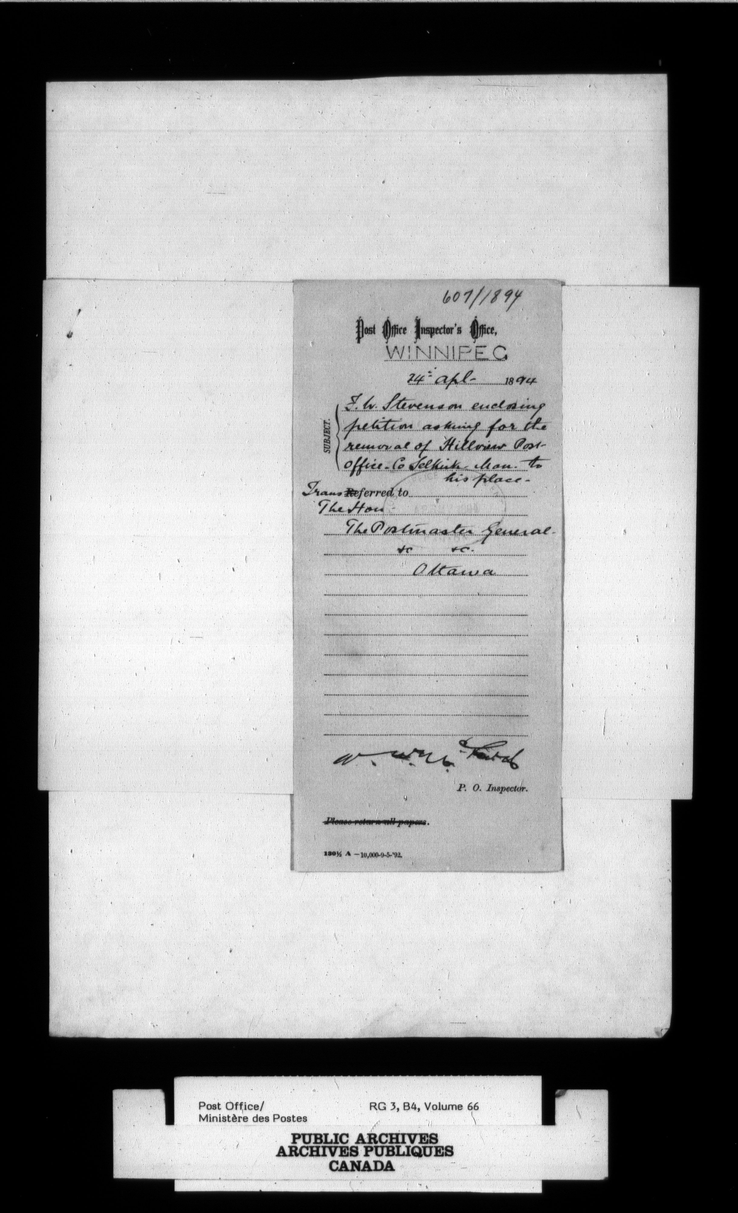 Post Office Department, Divisional Inspectors : Reports - 2186