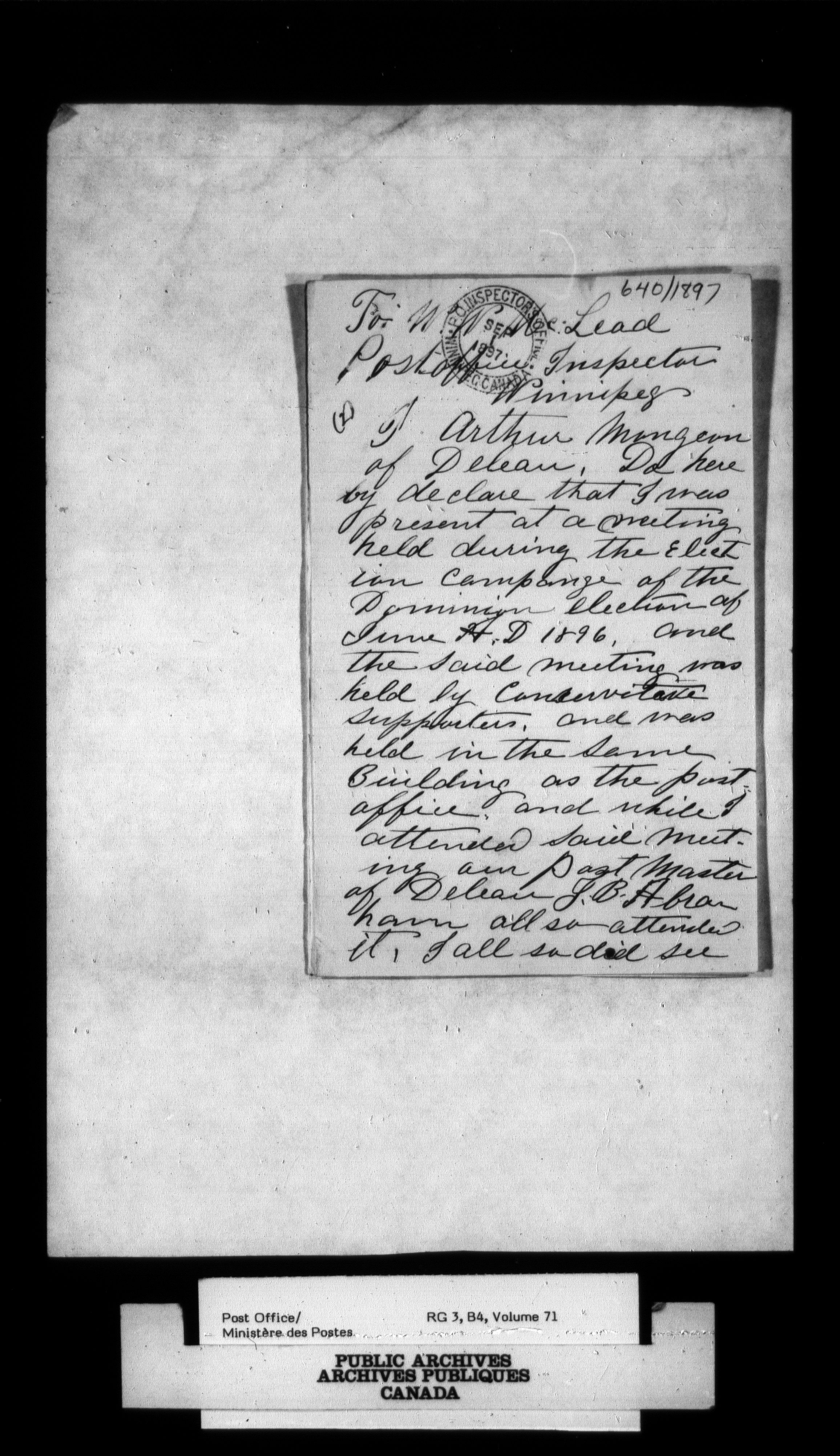Post Office Department, Divisional Inspectors : Reports - 2189