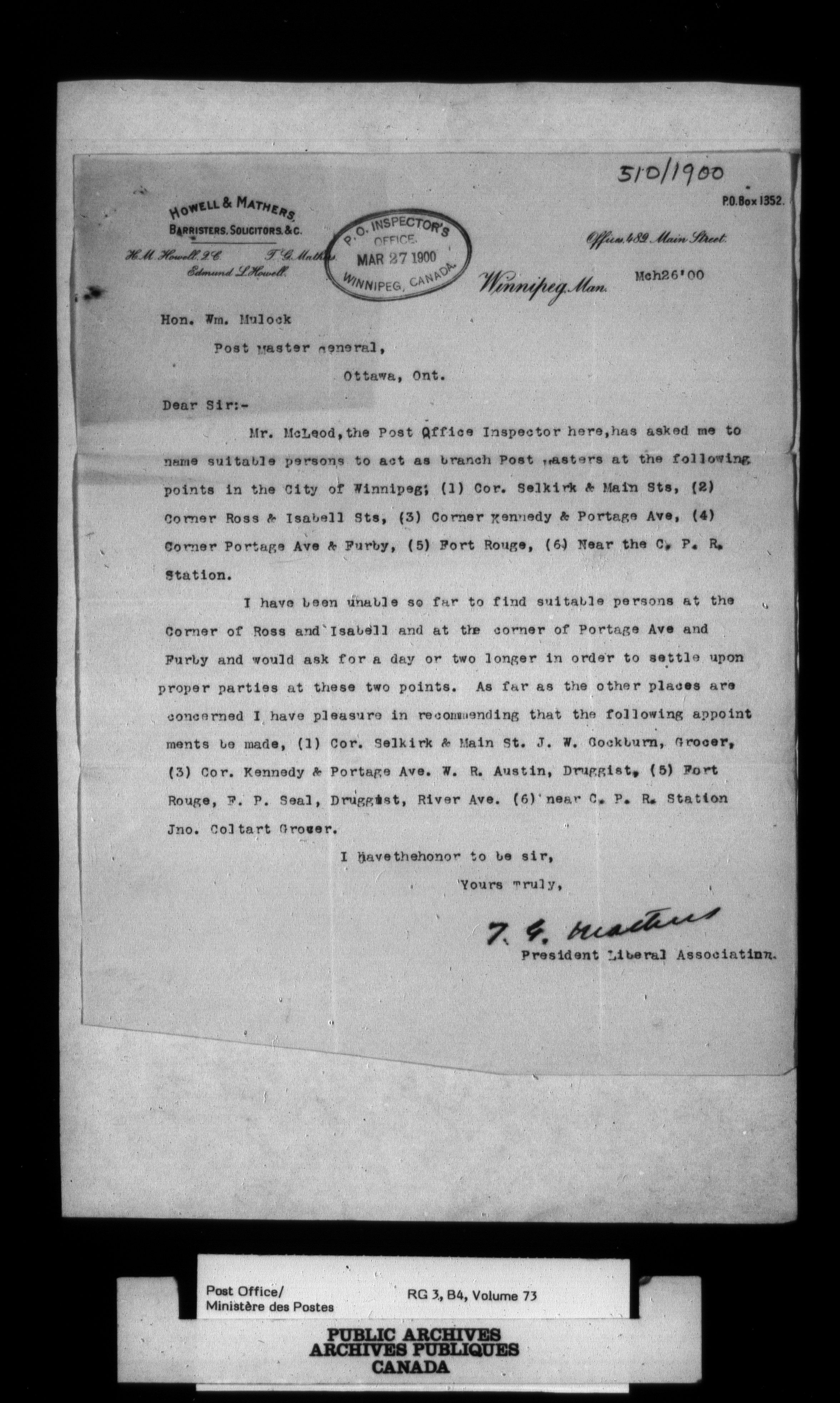 Post Office Department, Divisional Inspectors : Reports - 2192
