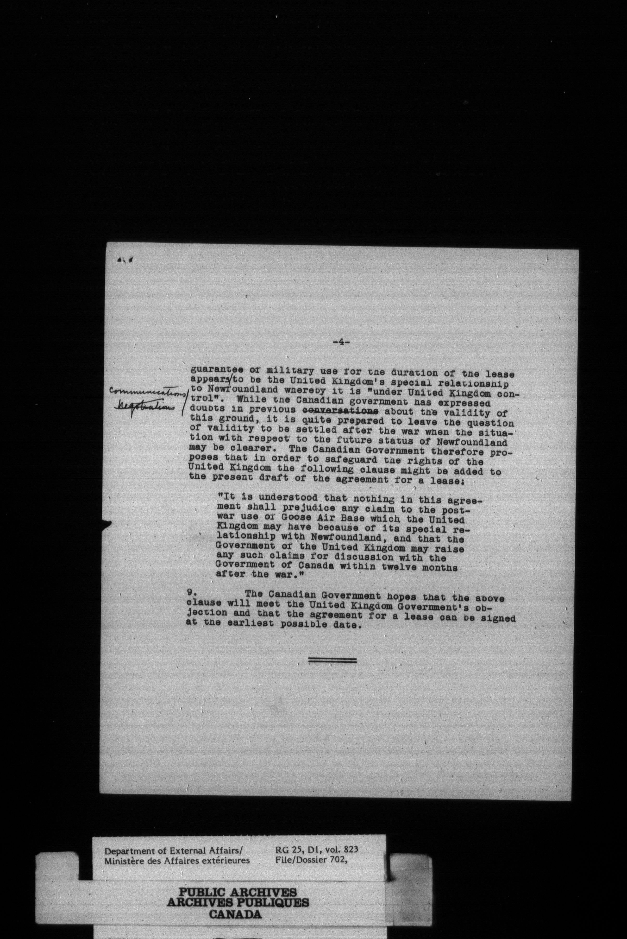 Department of External Affairs : Office of the Under-Secretary of State for External Affairs : T-2206