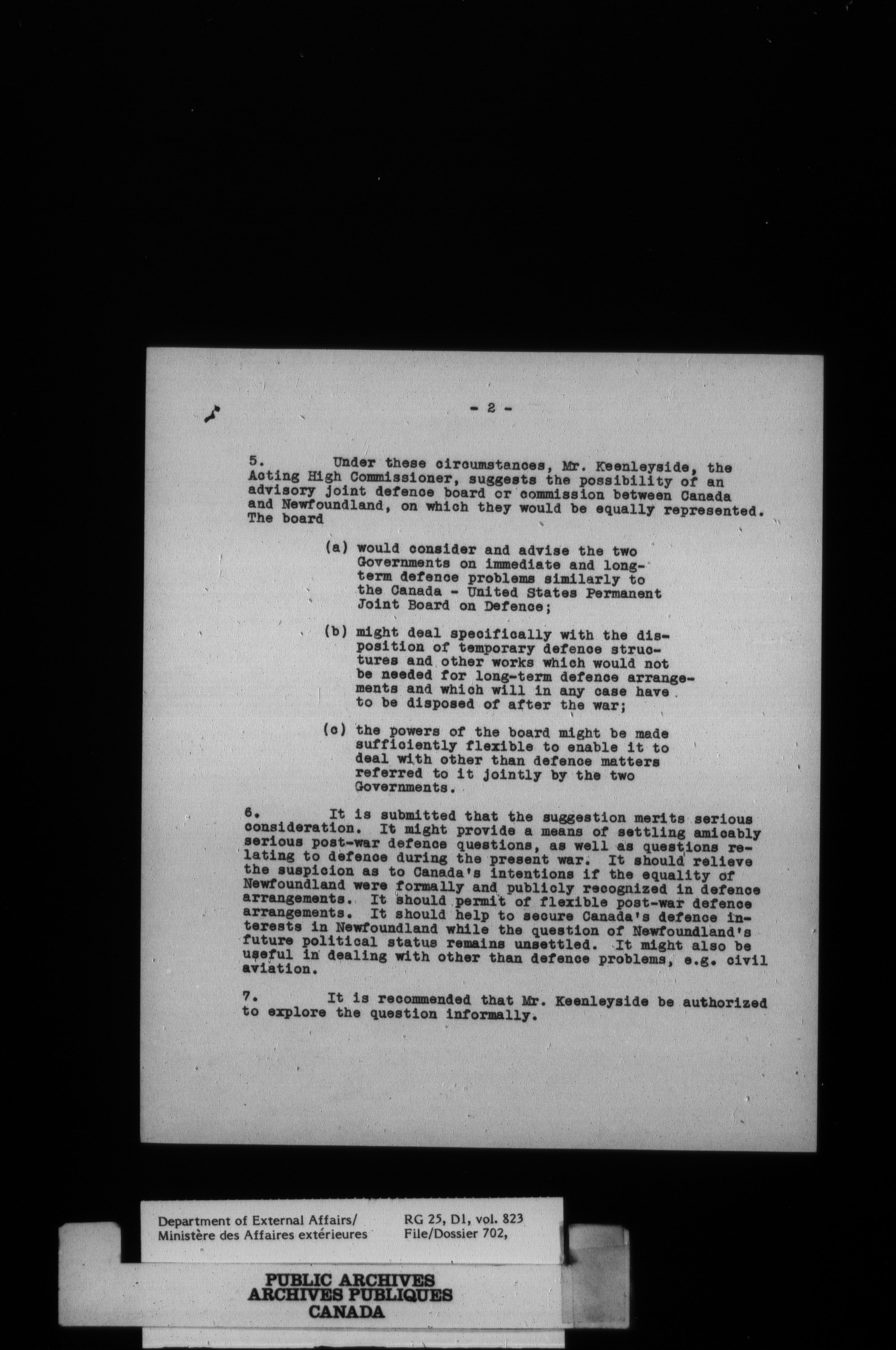 Department of External Affairs : Office of the Under-Secretary of State for External Affairs : T-2206