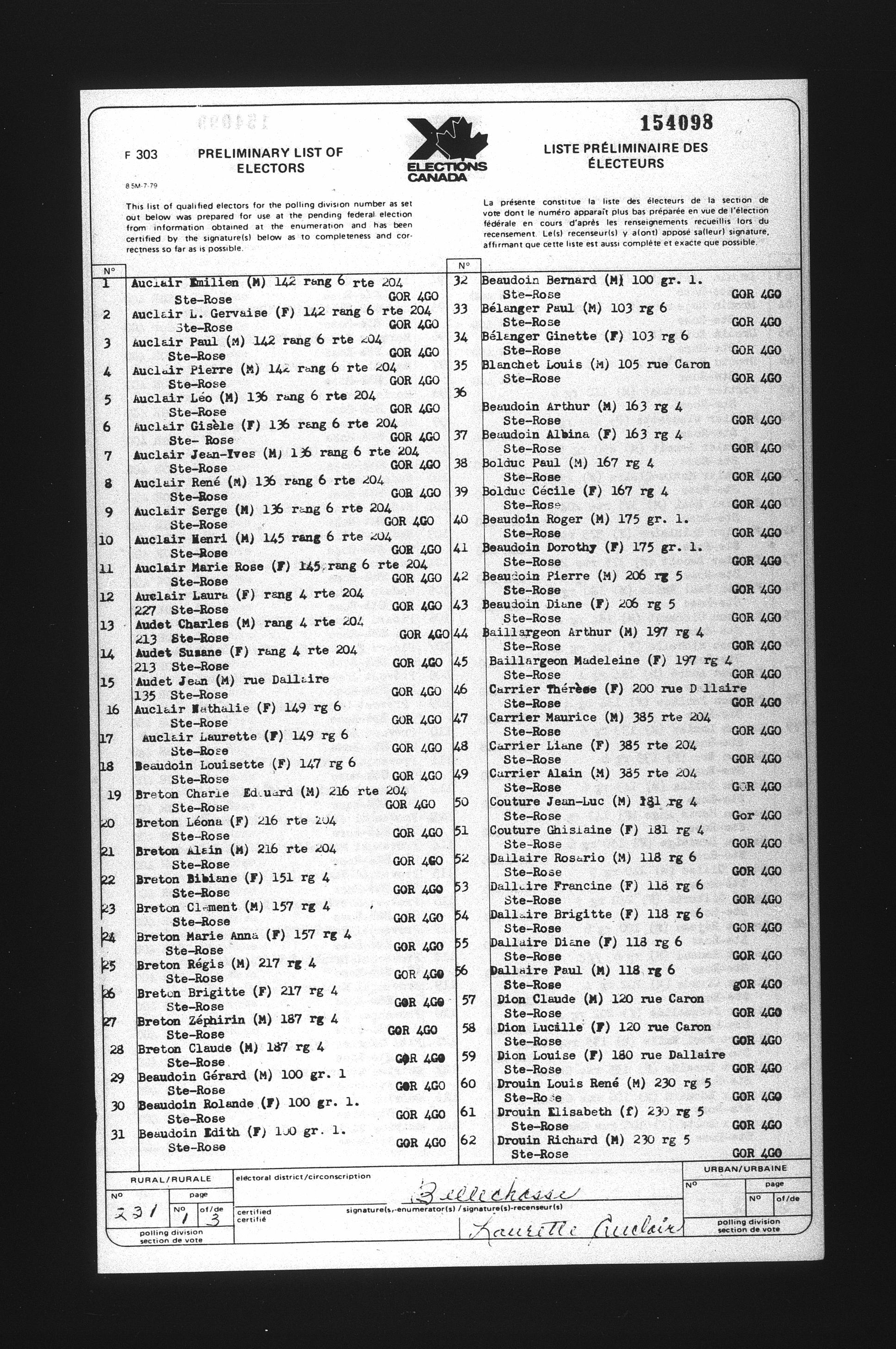Preliminary voters' lists : Québec, 1984 - T-22062