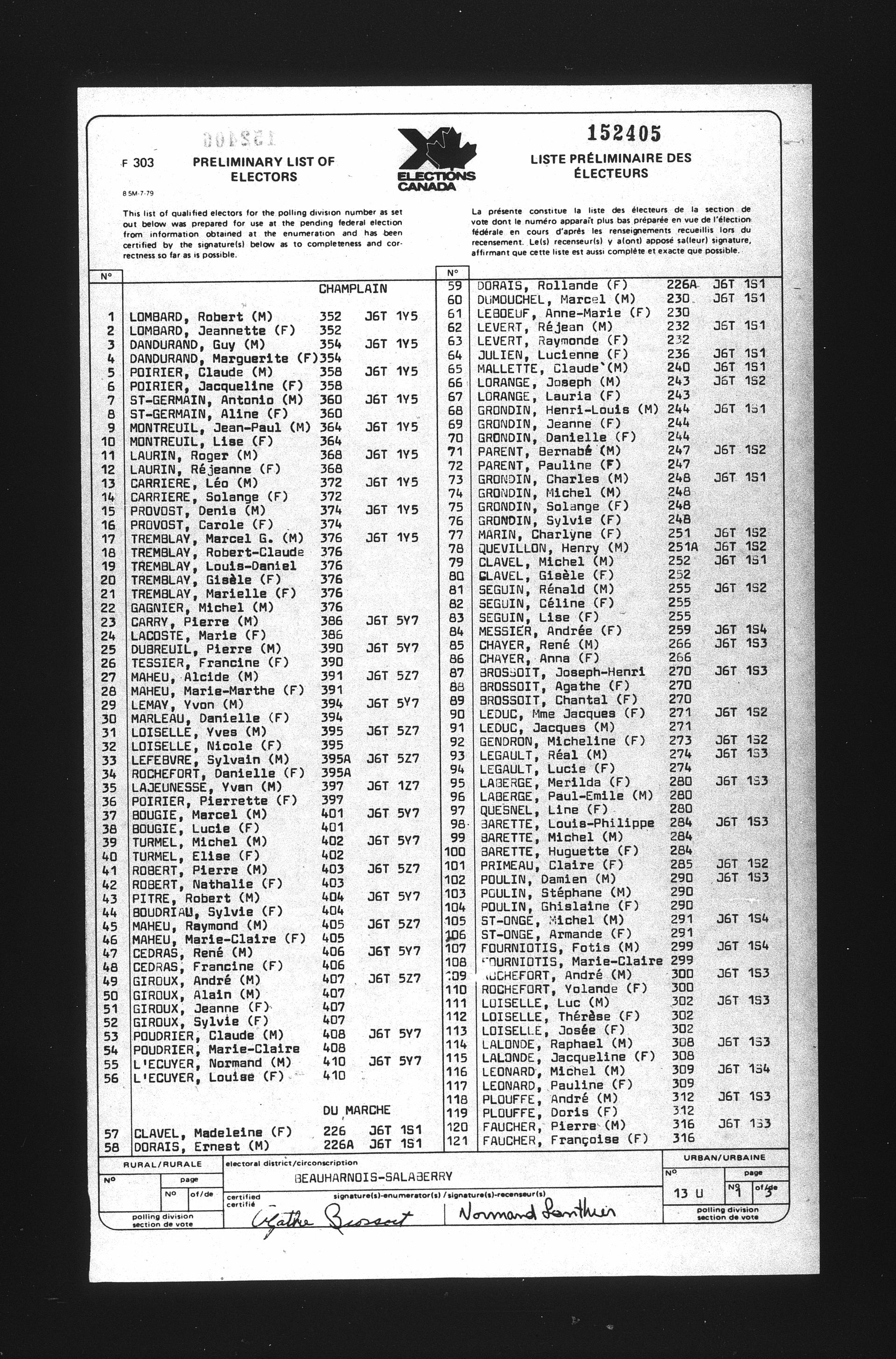 Preliminary voters' lists : Québec, 1984 - T-22062