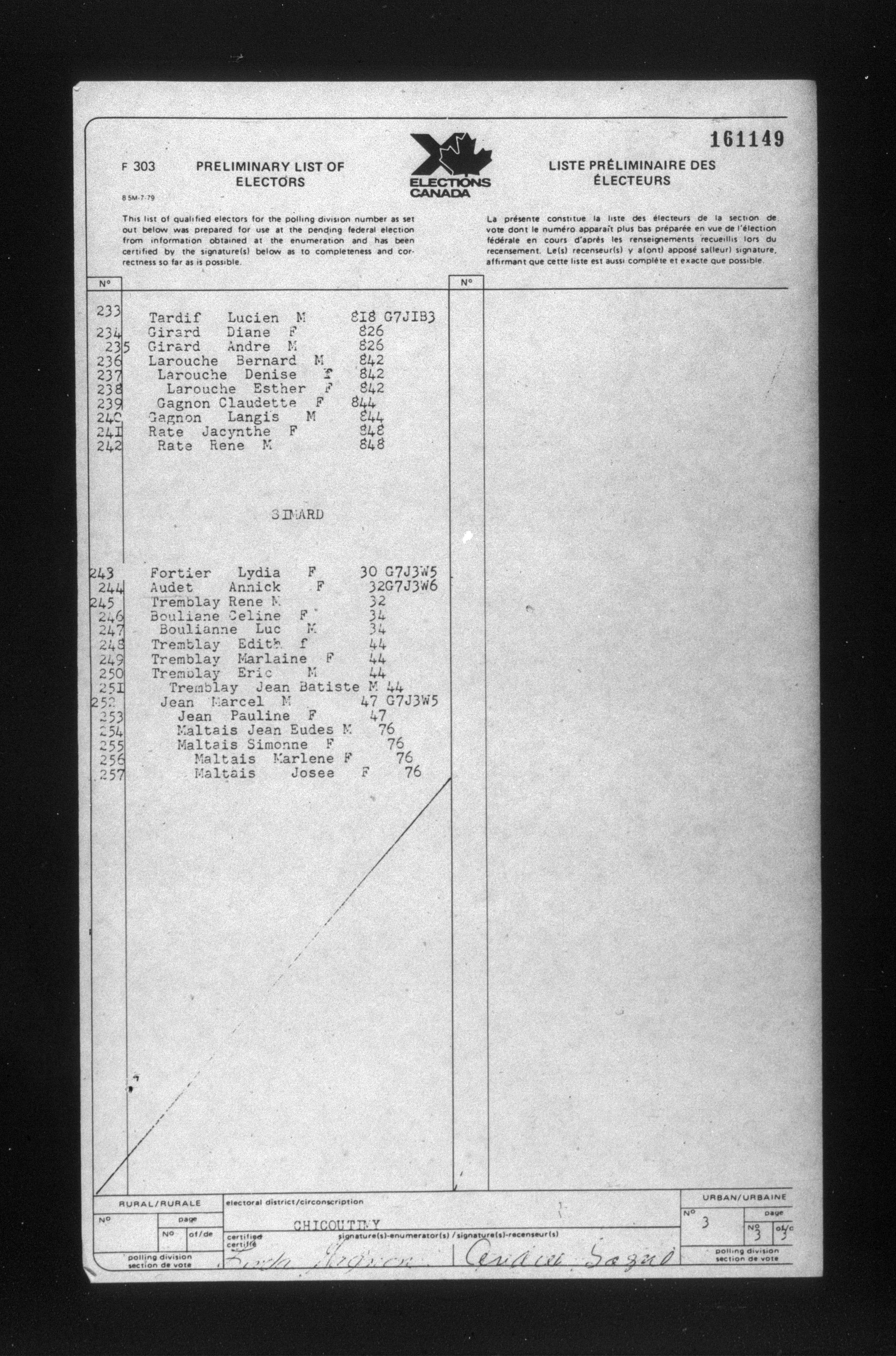 Preliminary voters' lists : Québec, 1984 - T-22067