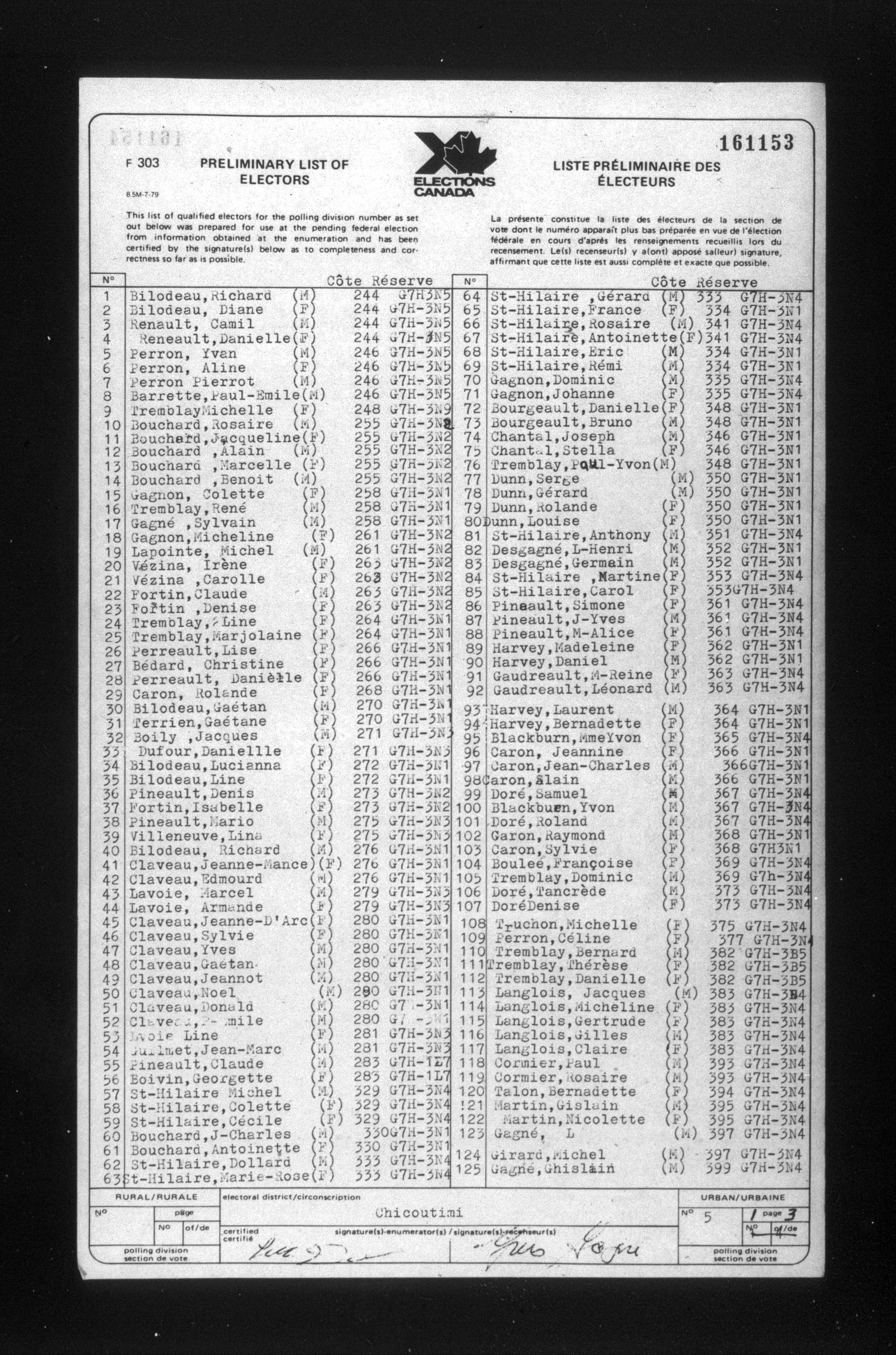 Preliminary voters' lists : Québec, 1984 - T-22067