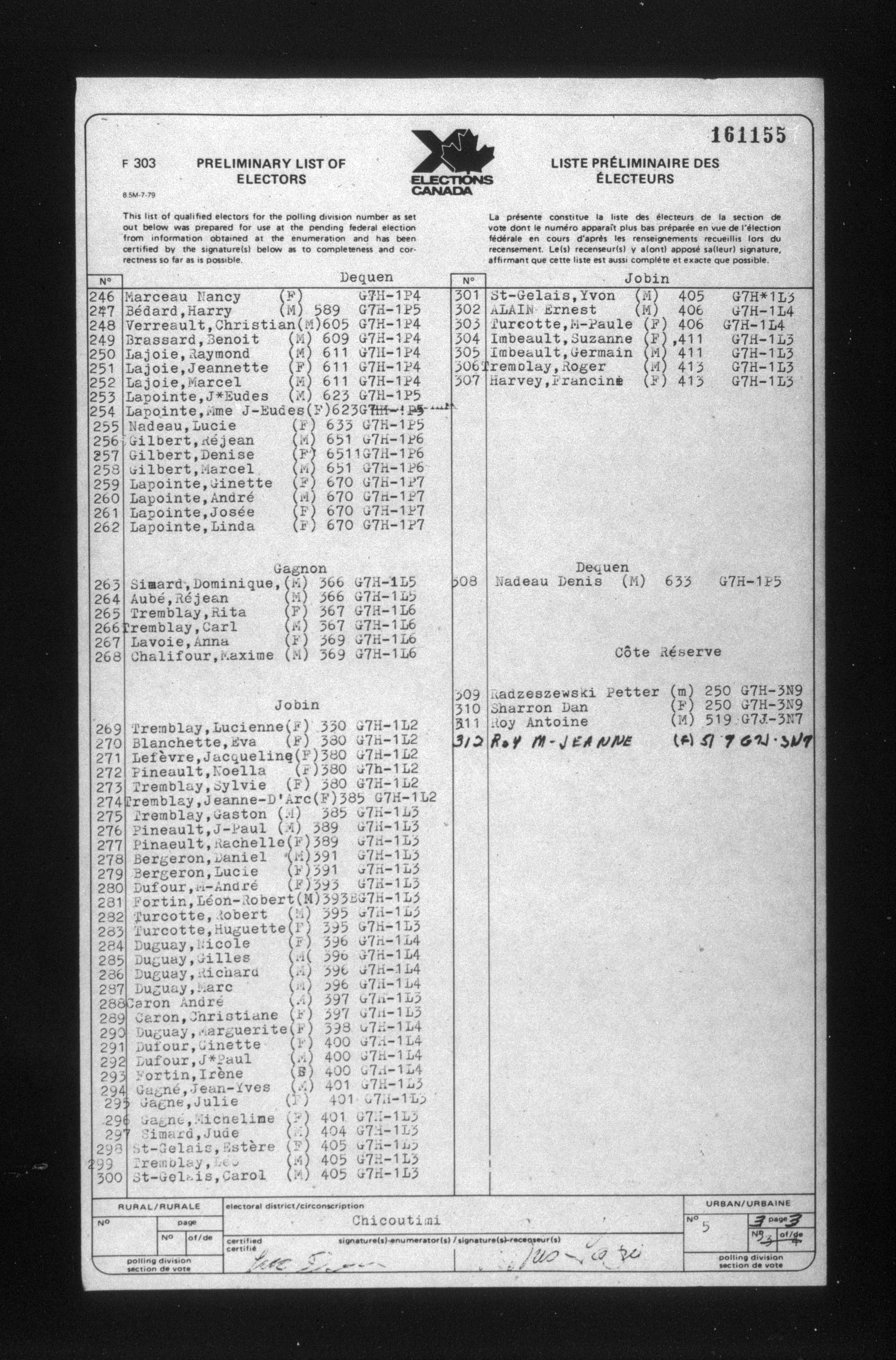 Preliminary voters' lists : Québec, 1984 - T-22067
