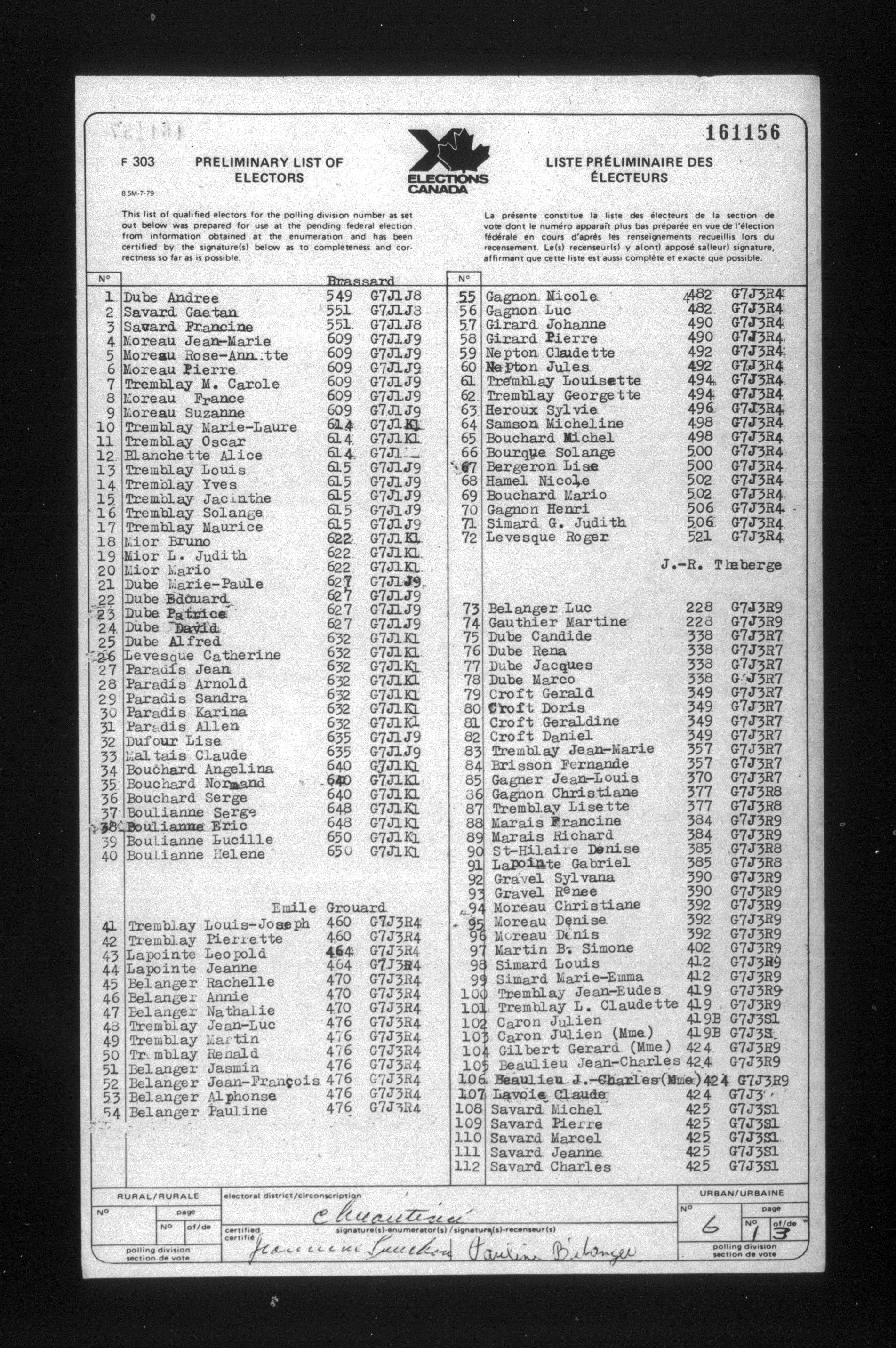 Preliminary voters' lists : Québec, 1984 - T-22067
