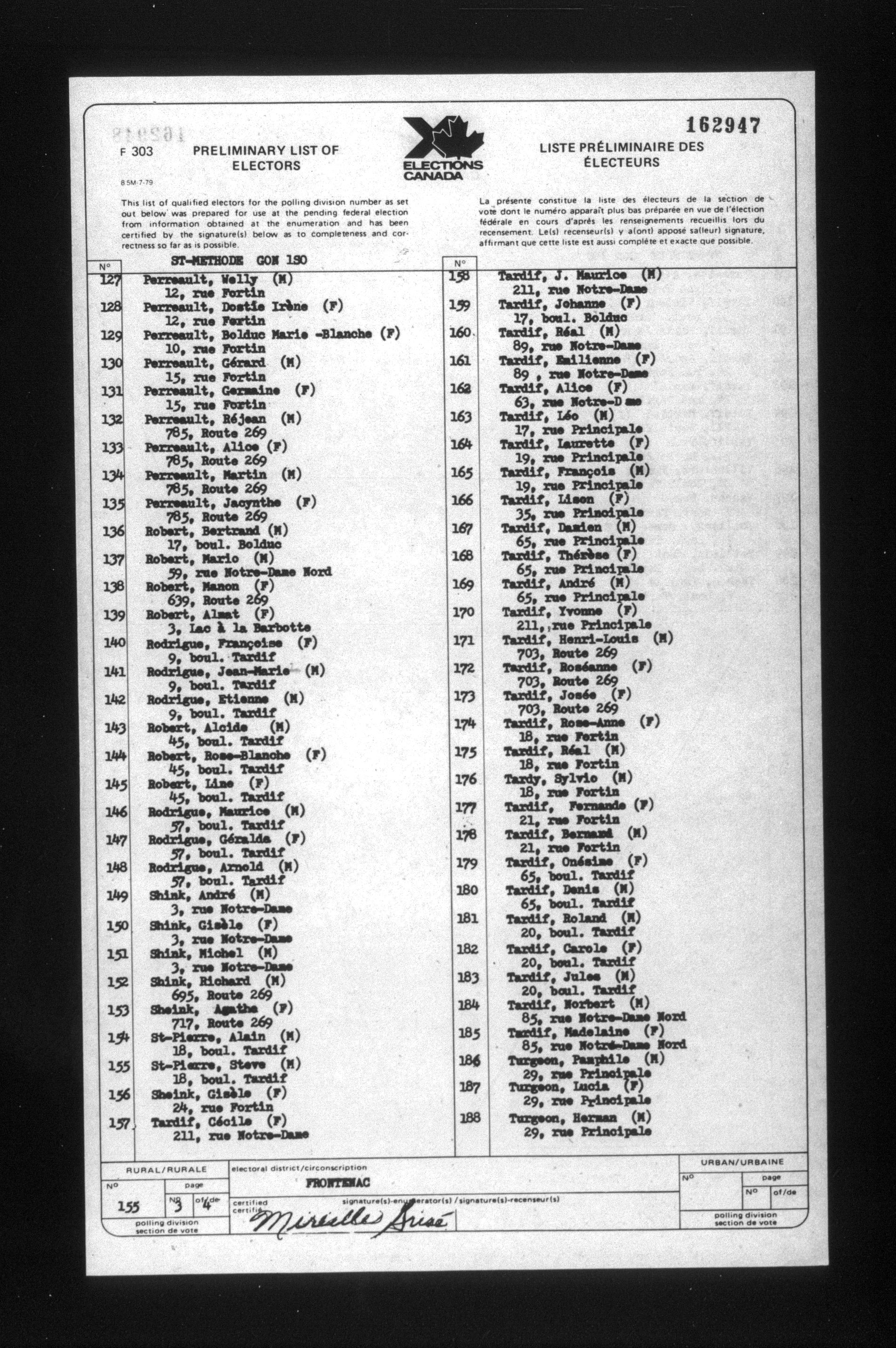 Preliminary voters' lists : Québec, 1984 - T-22067