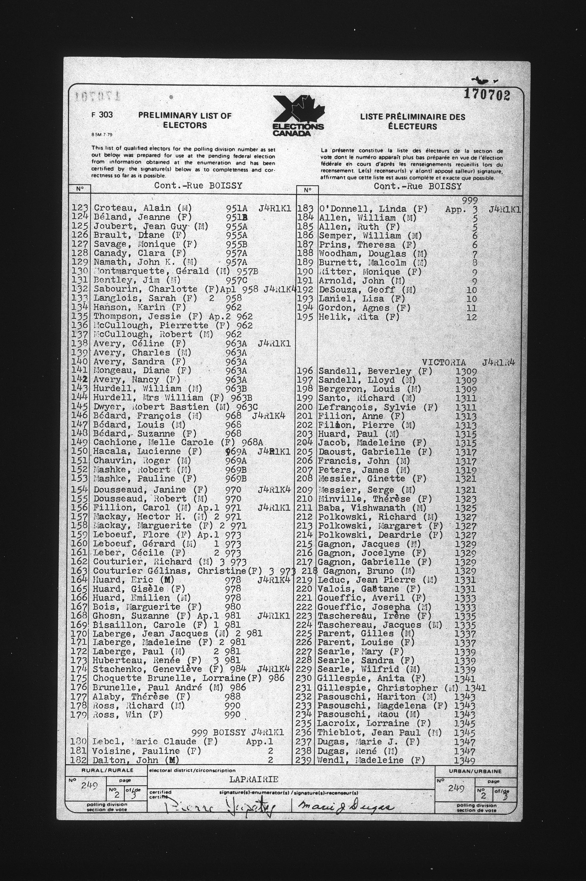 Preliminary voters' lists : Québec, 1984 - T-22071