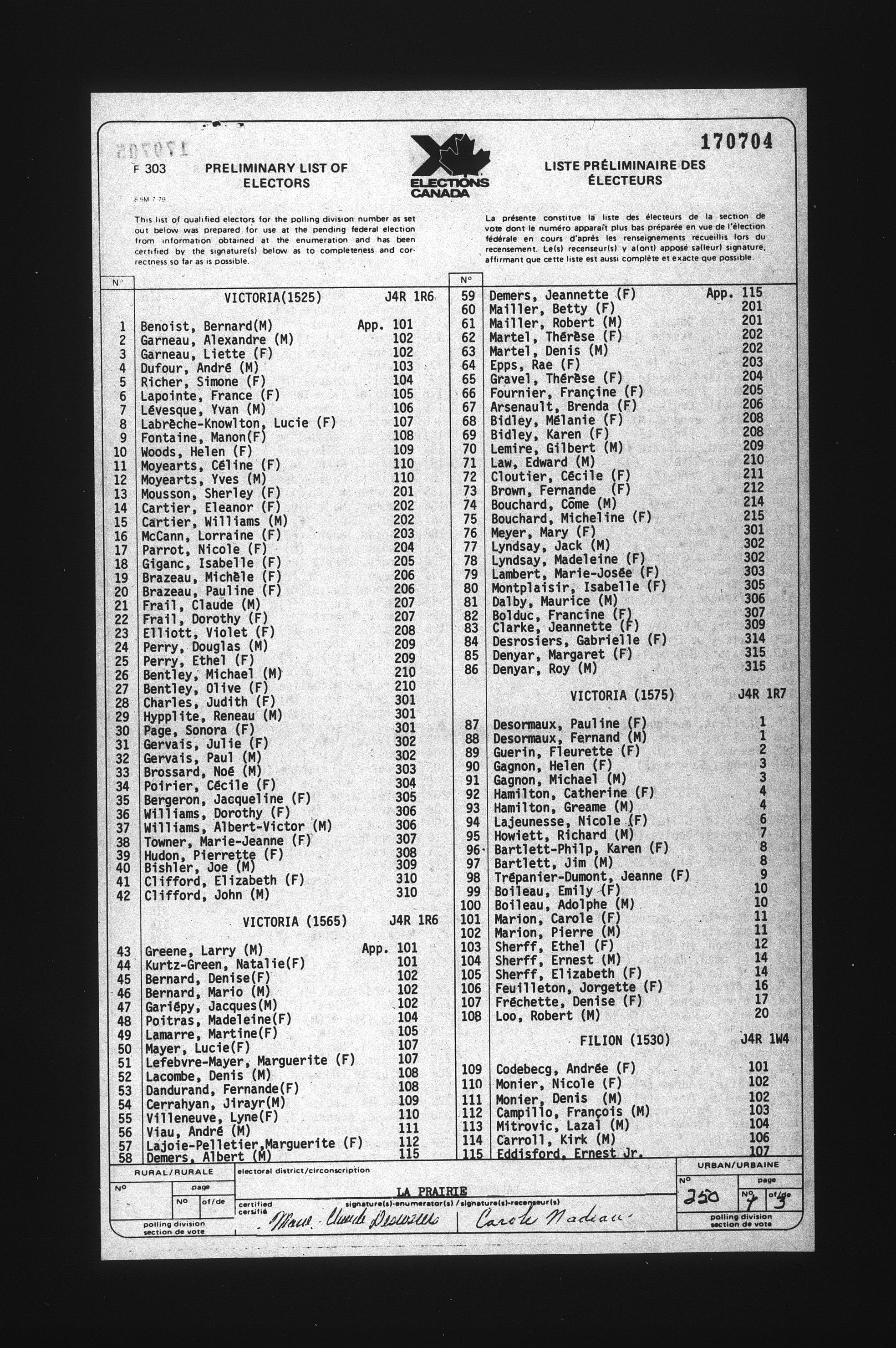 Preliminary voters' lists : Québec, 1984 - T-22071