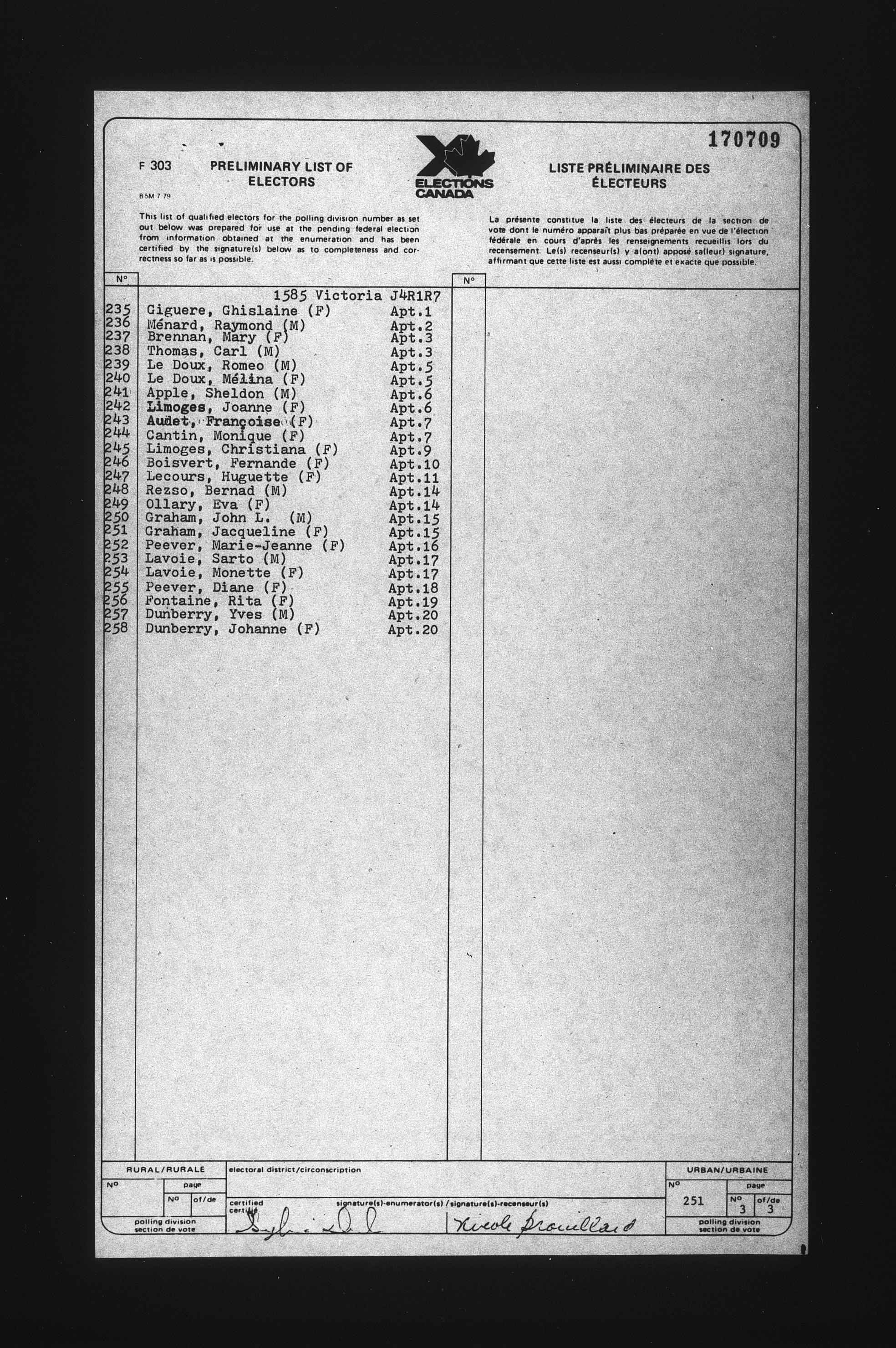 Preliminary voters' lists : Québec, 1984 - T-22071
