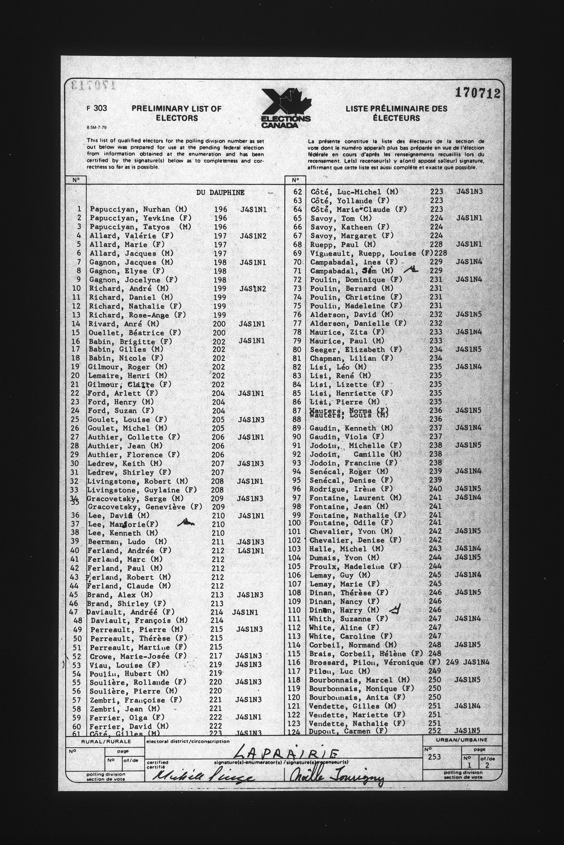 Preliminary voters' lists : Québec, 1984 - T-22071