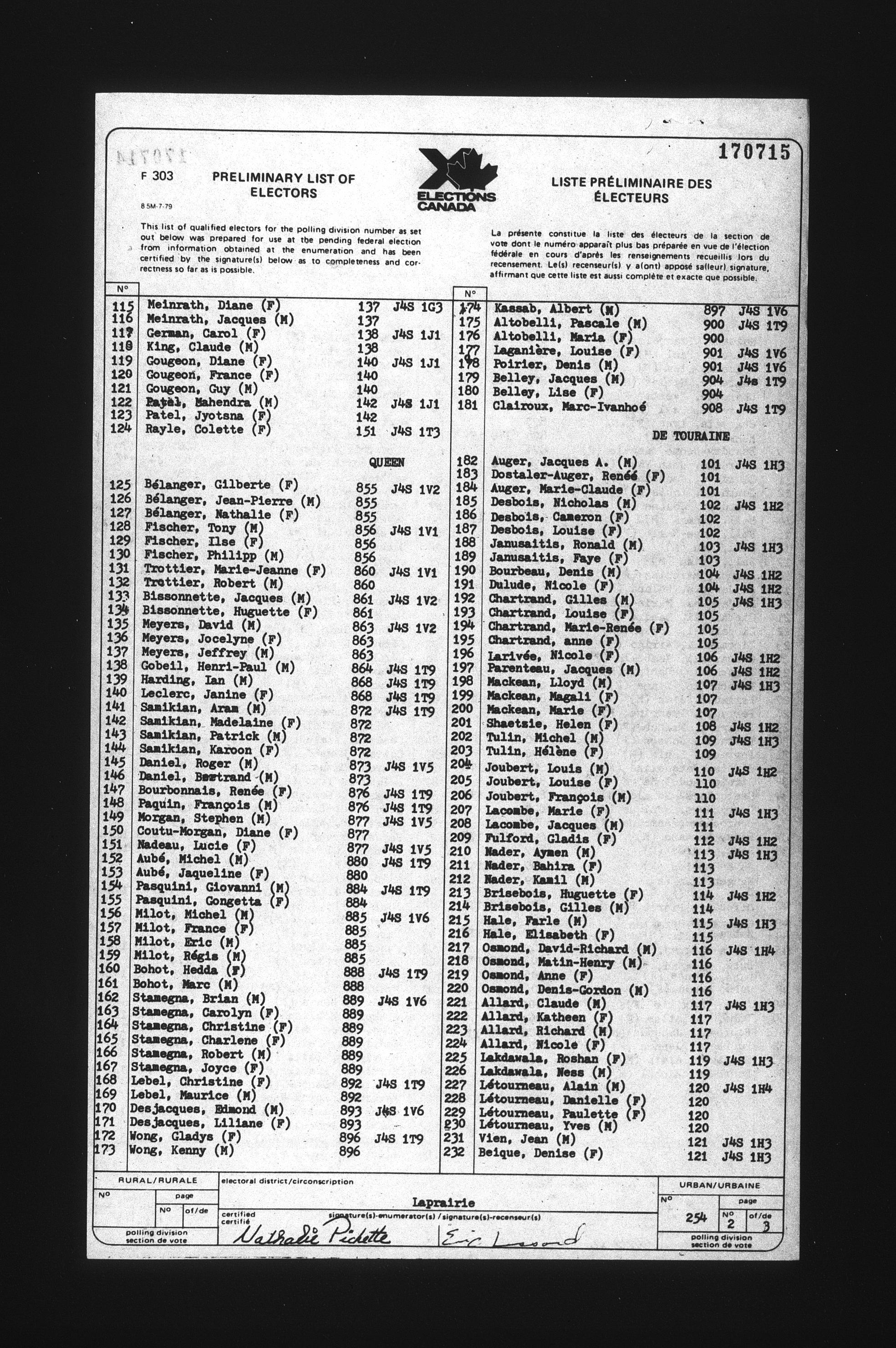 Preliminary voters' lists : Québec, 1984 - T-22071