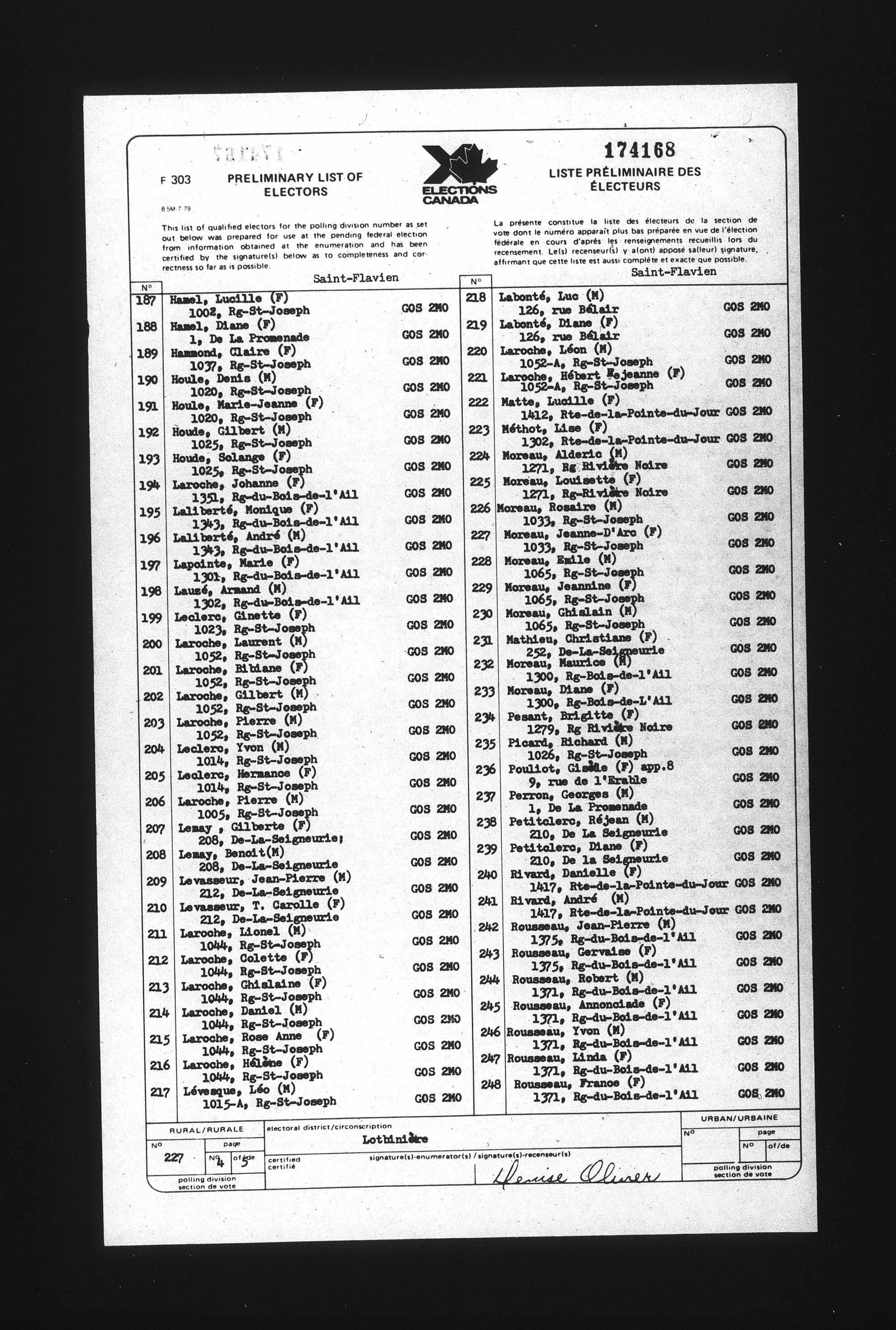 Preliminary voters' lists : Québec, 1984 - T-22073