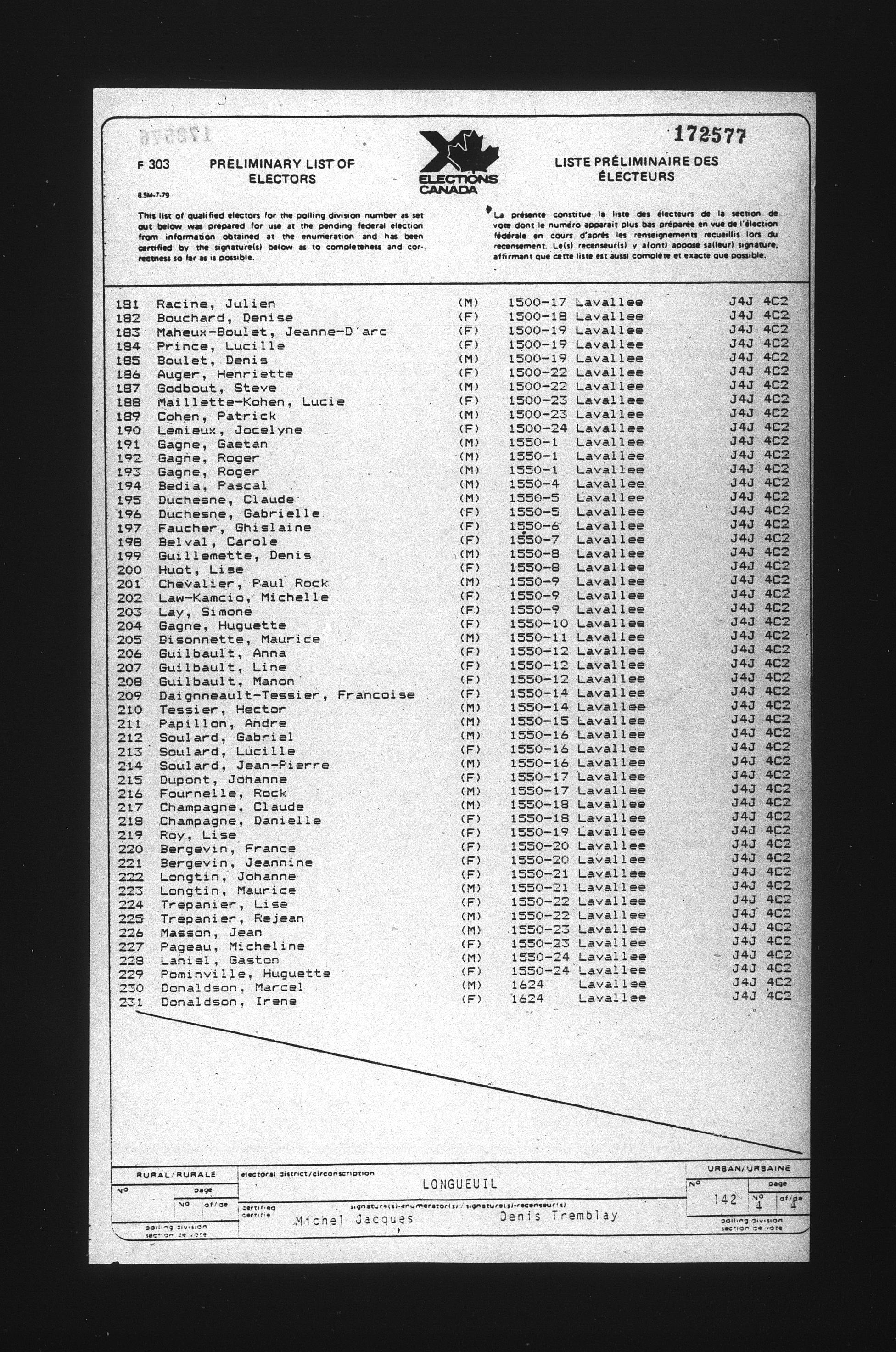 Preliminary voters' lists : Québec, 1984 - T-22073