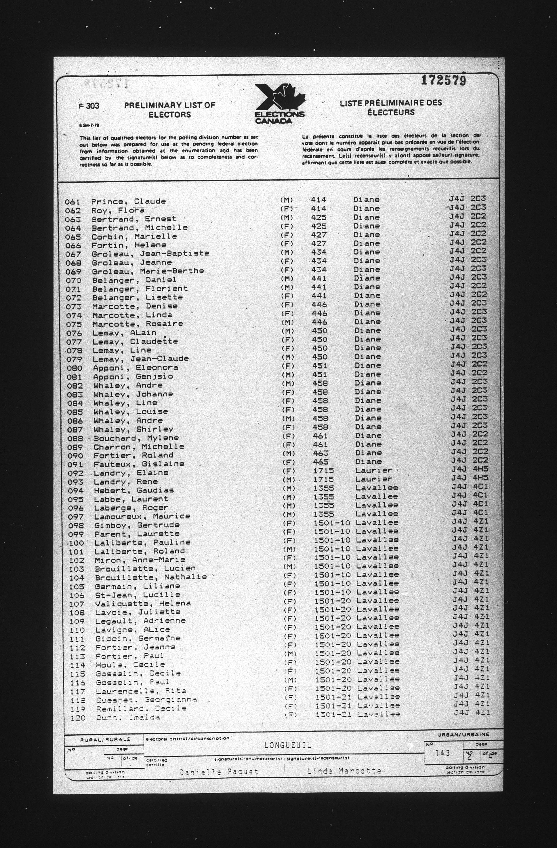 Preliminary voters' lists : Québec, 1984 - T-22073