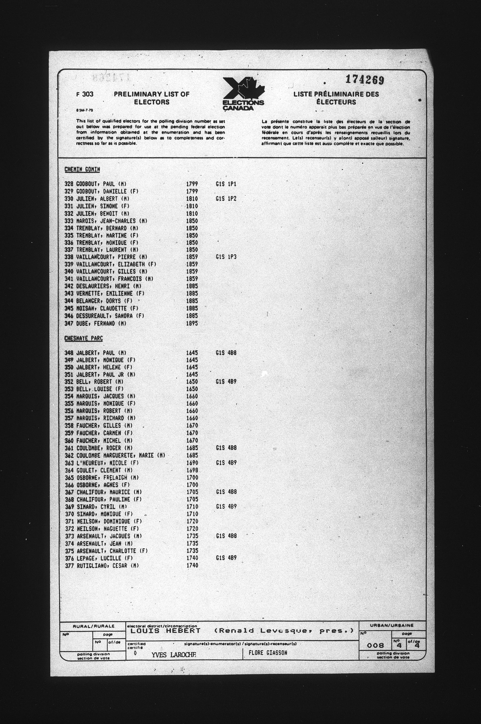Preliminary voters' lists : Québec, 1984 - T-22074