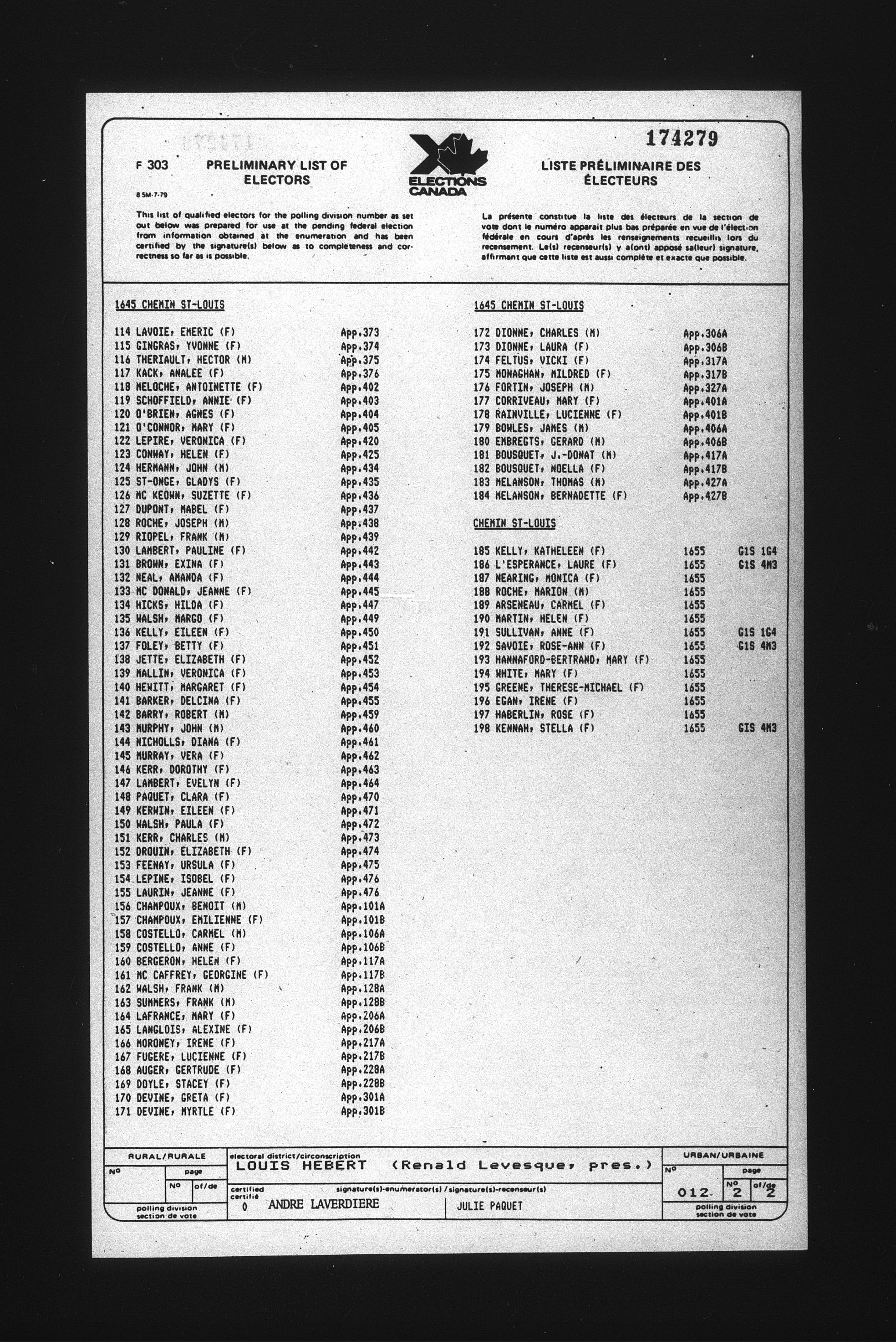 Preliminary voters' lists : Québec, 1984 - T-22074