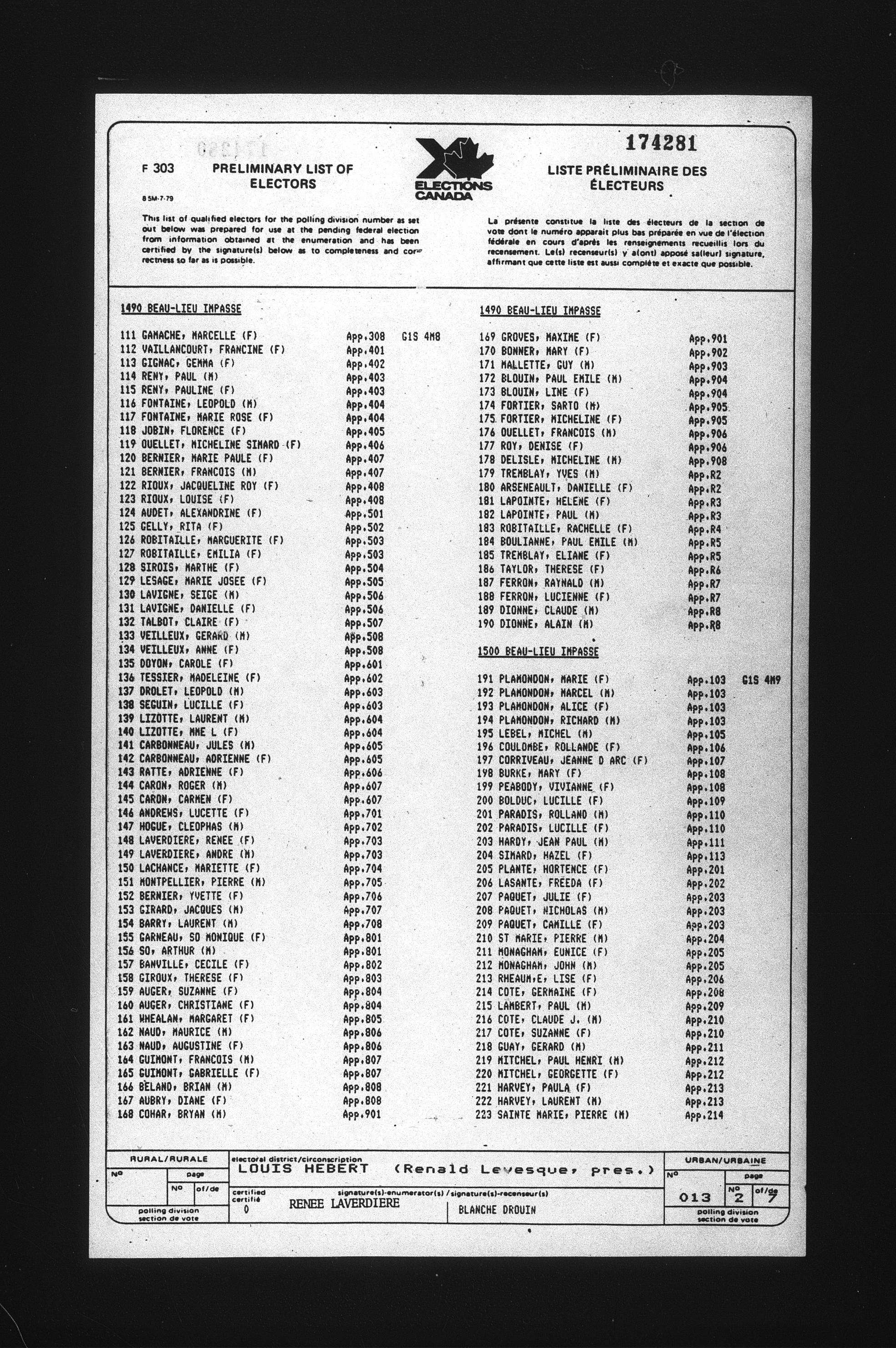 Preliminary voters' lists : Québec, 1984 - T-22074