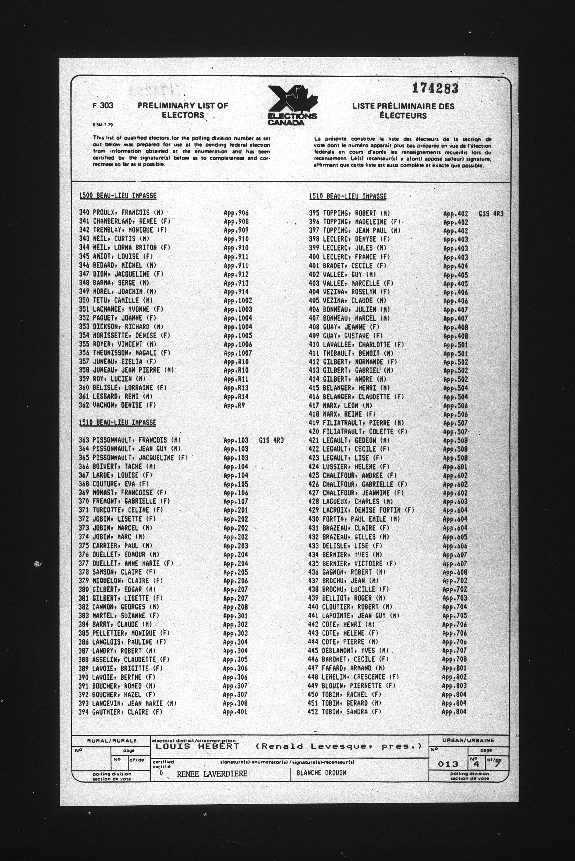Preliminary voters' lists : Québec, 1984 - T-22074