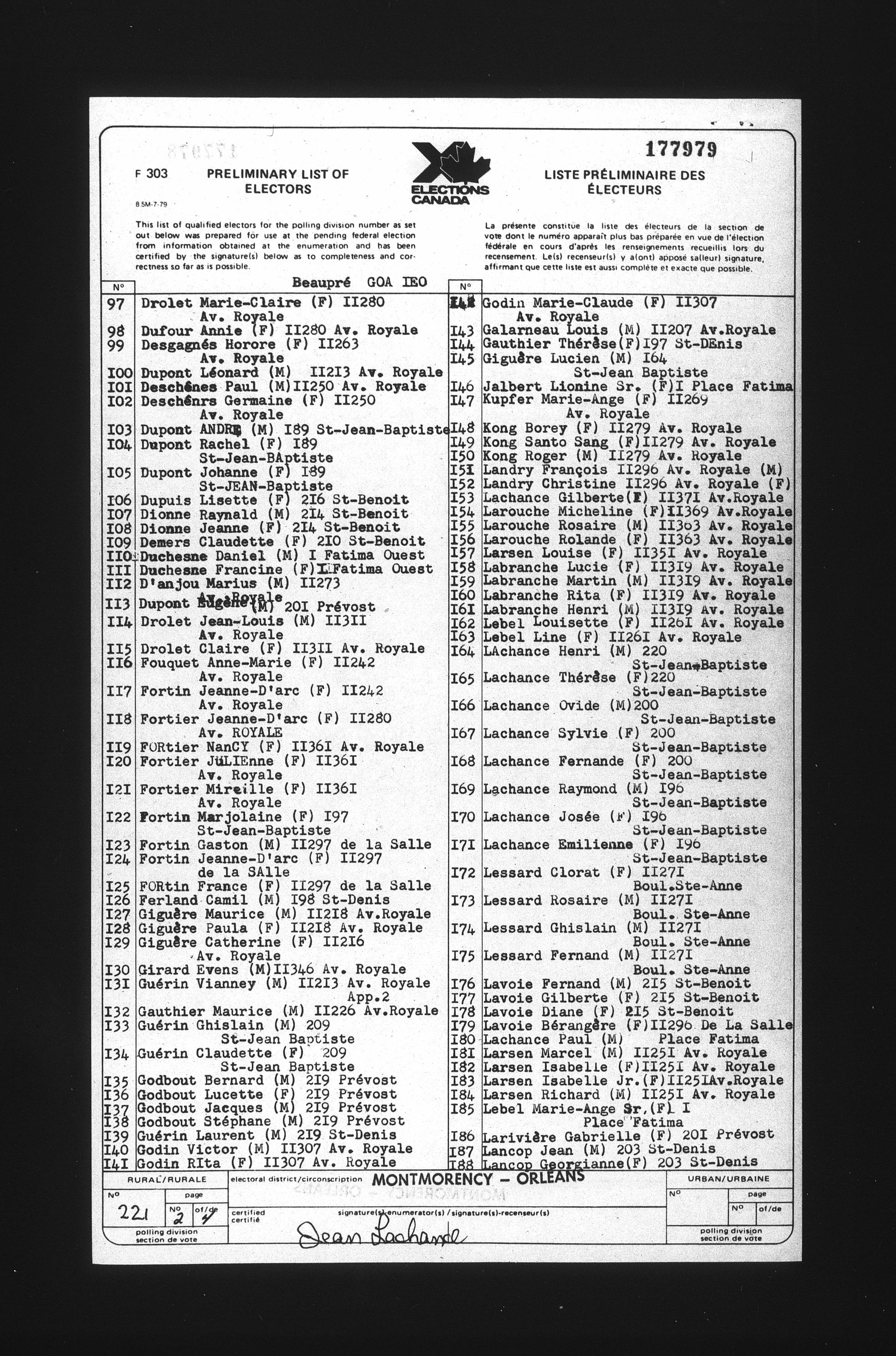 Preliminary voters' lists : Québec, 1984 - T-22075