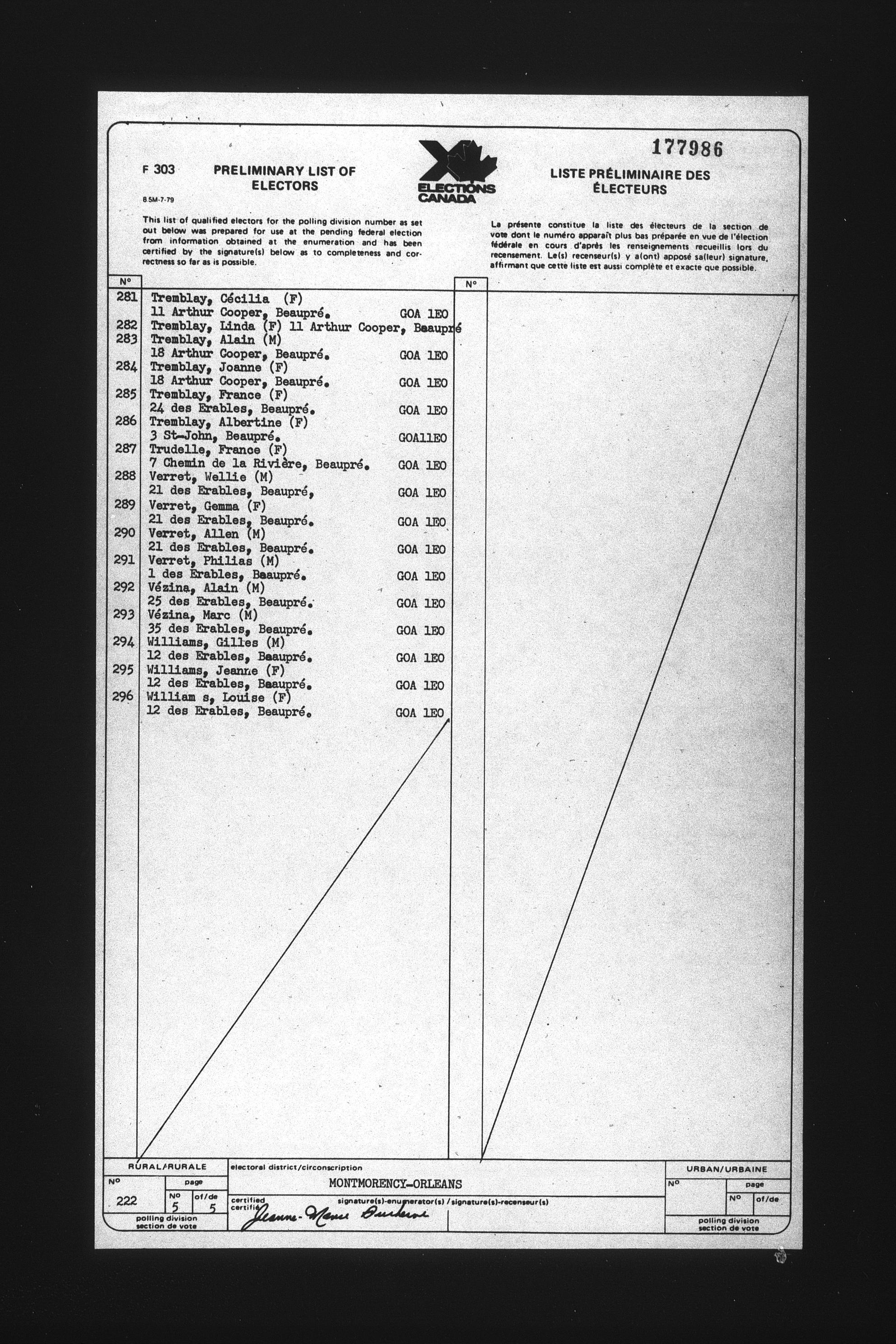 Preliminary voters' lists : Québec, 1984 - T-22075