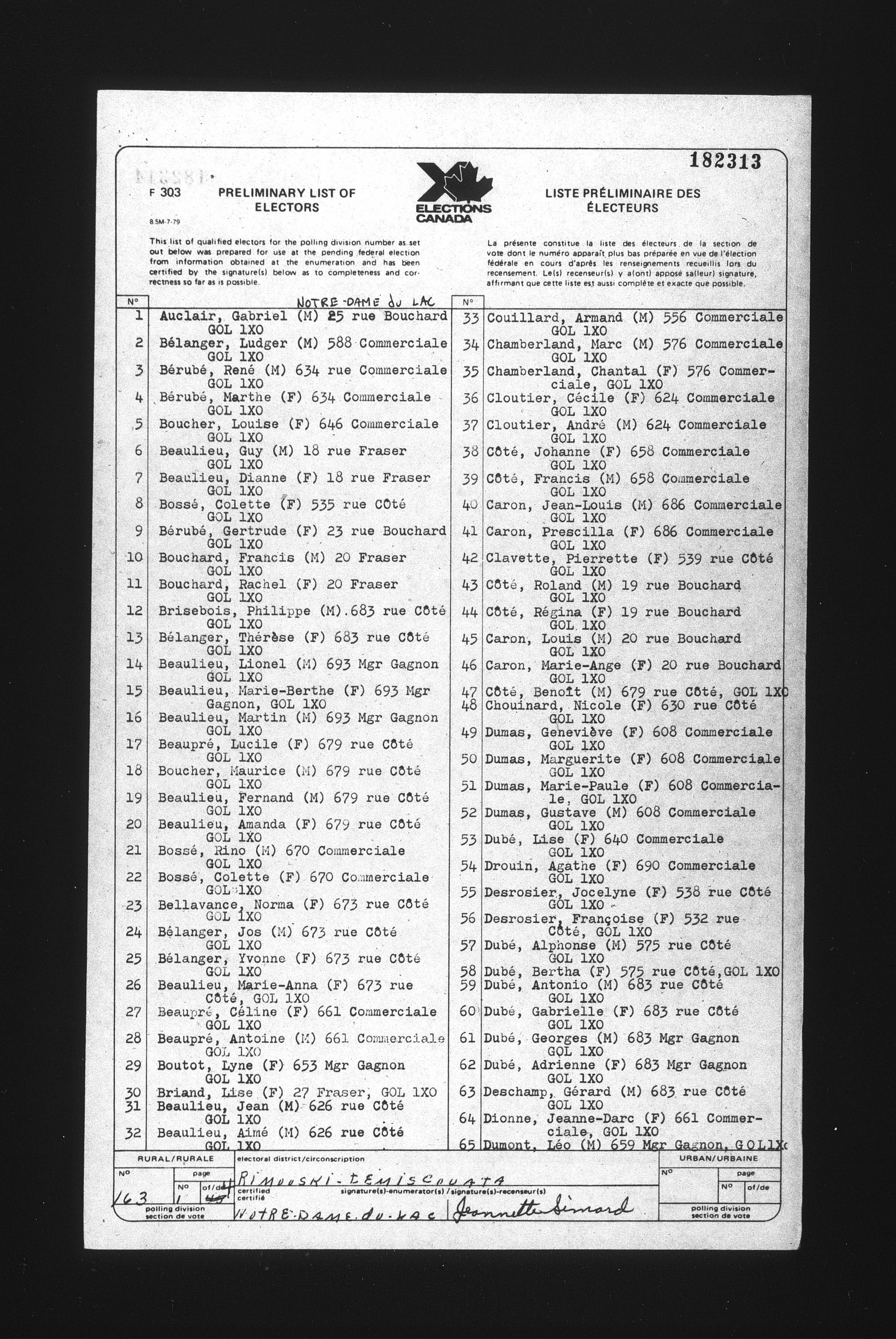 Preliminary voters' lists : Québec, 1984 - T-22078