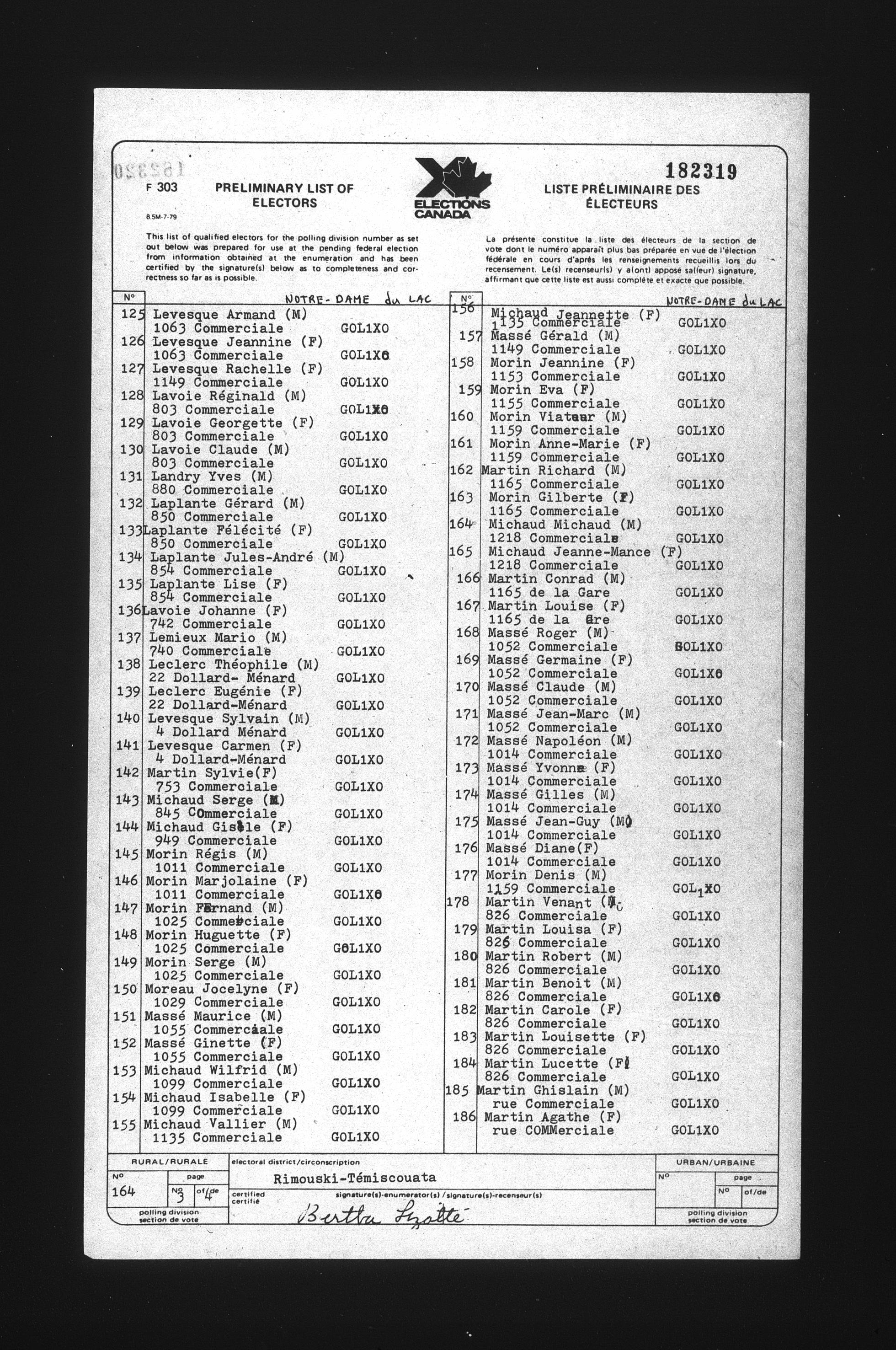 Preliminary voters' lists : Québec, 1984 - T-22078