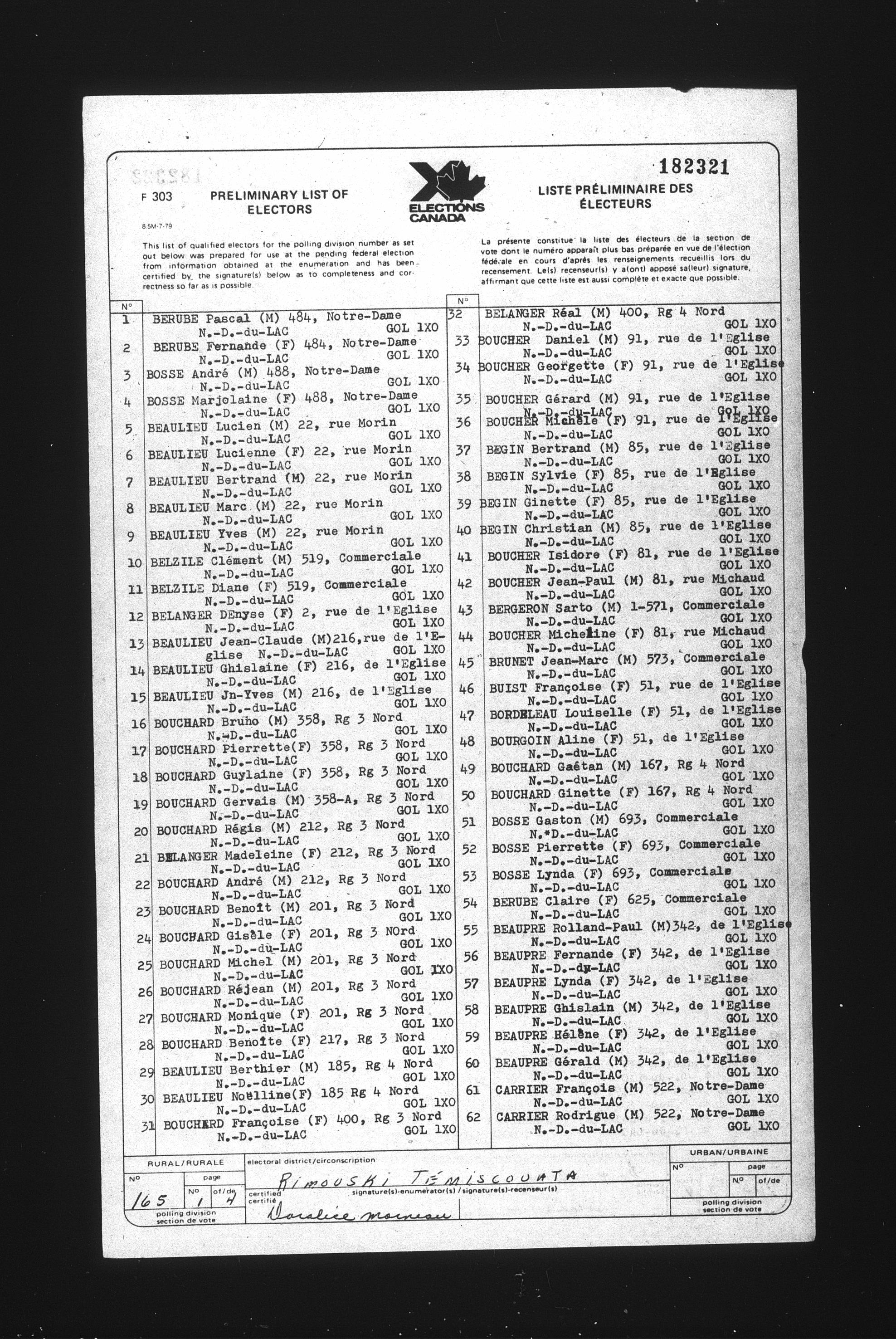 Preliminary voters' lists : Québec, 1984 - T-22078