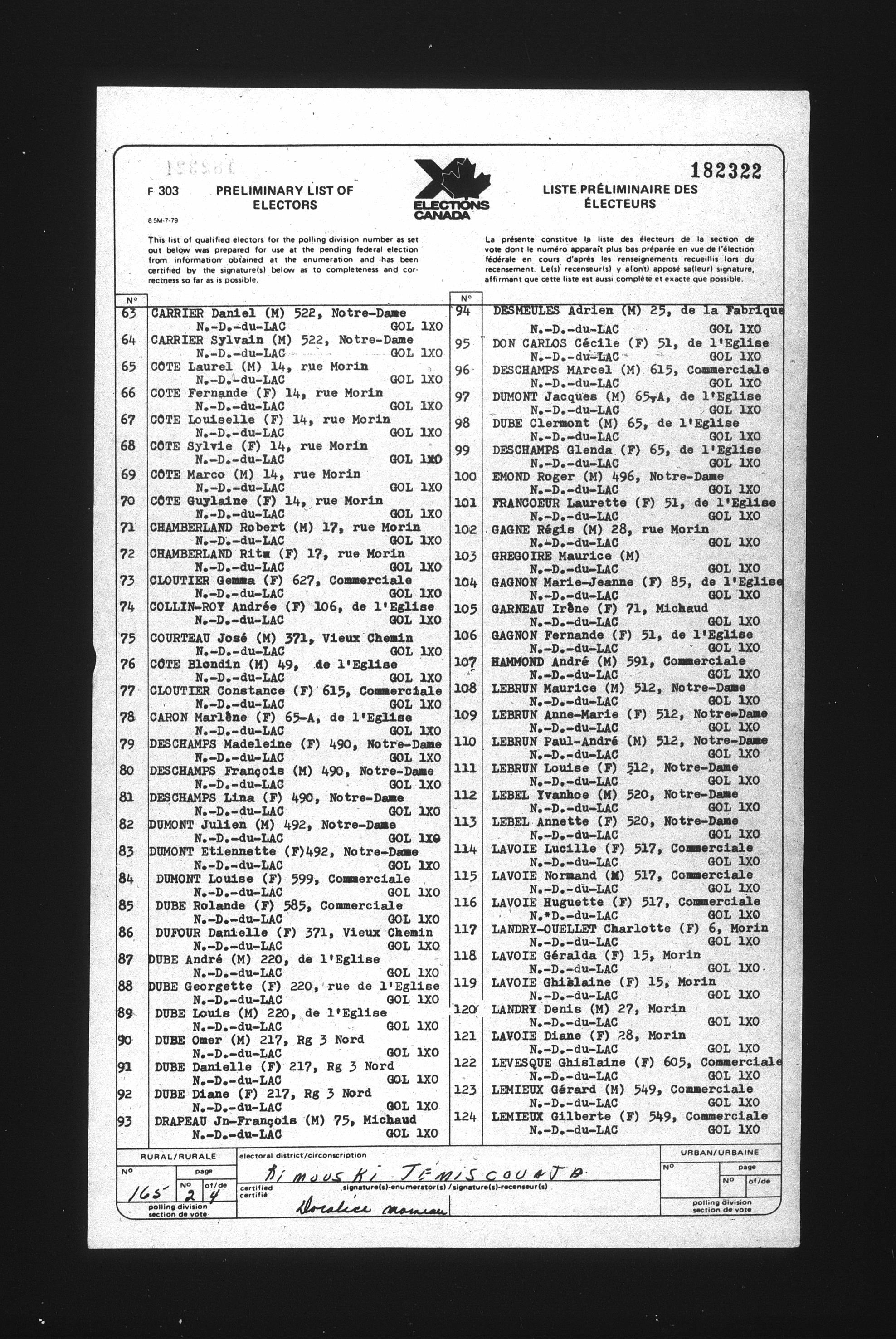 Preliminary voters' lists : Québec, 1984 - T-22078