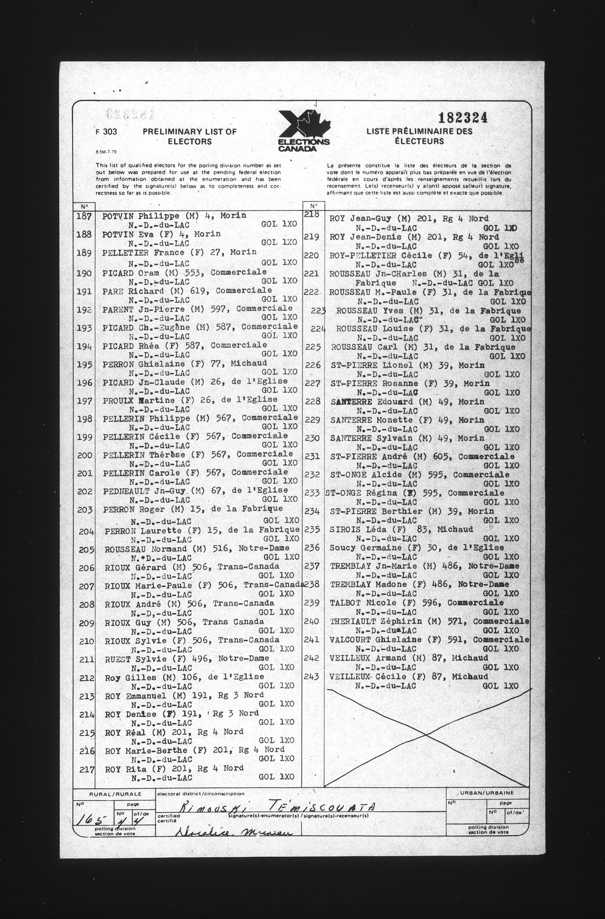 Preliminary voters' lists : Québec, 1984 - T-22078