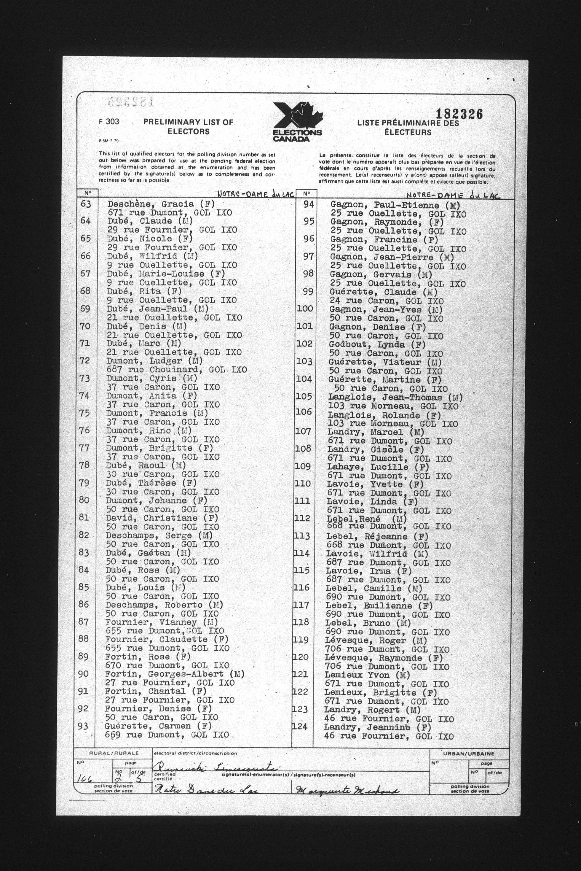 Preliminary voters' lists : Québec, 1984 - T-22078