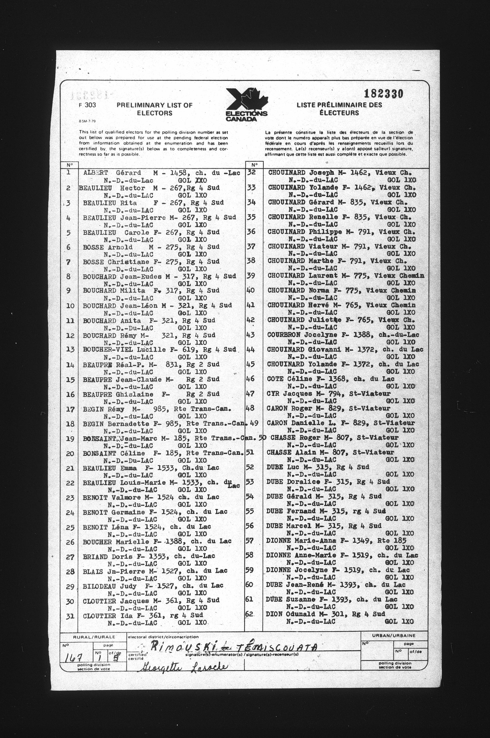 Preliminary voters' lists : Québec, 1984 - T-22078