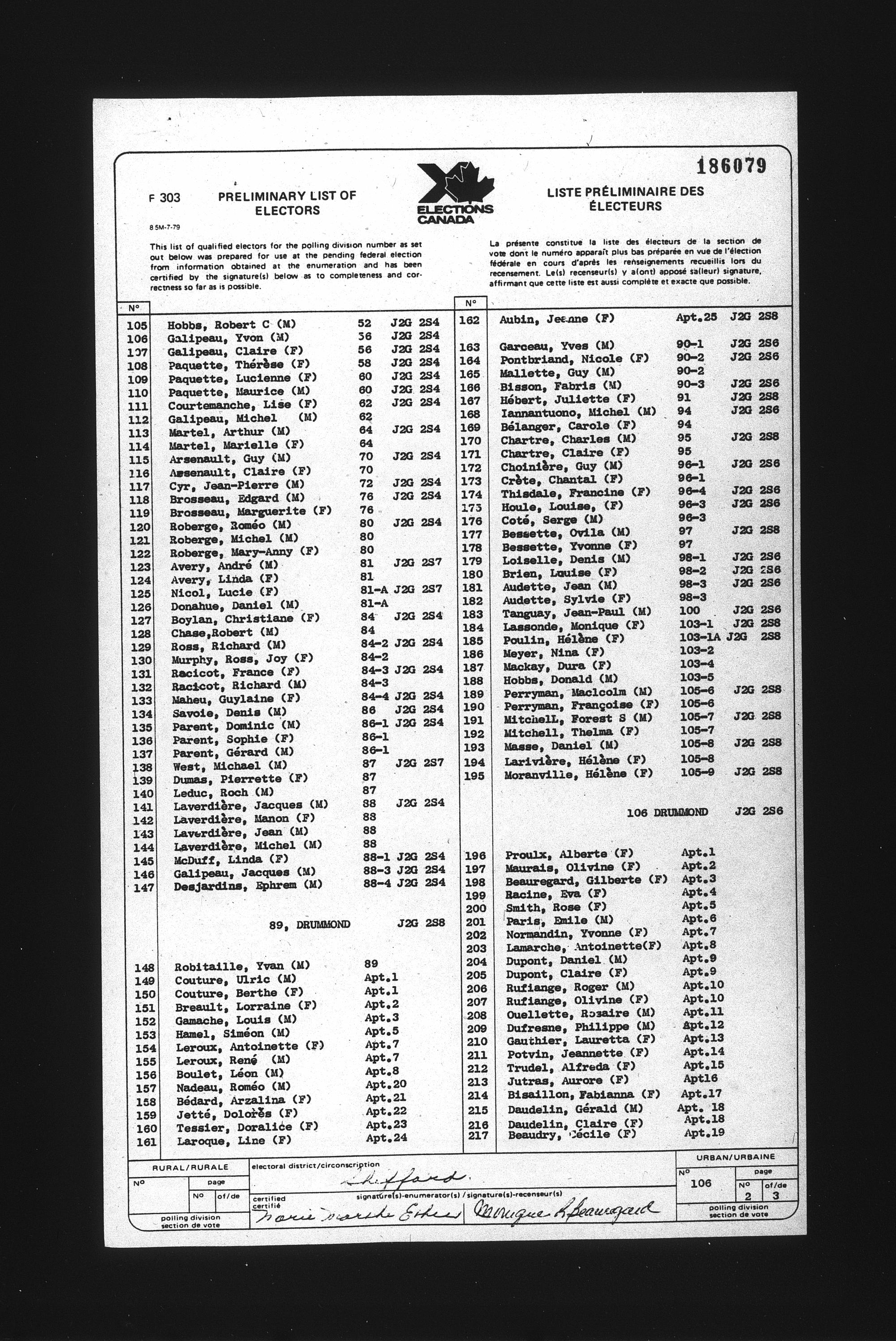 Preliminary voters' lists : Québec, 1984 - T-22079
