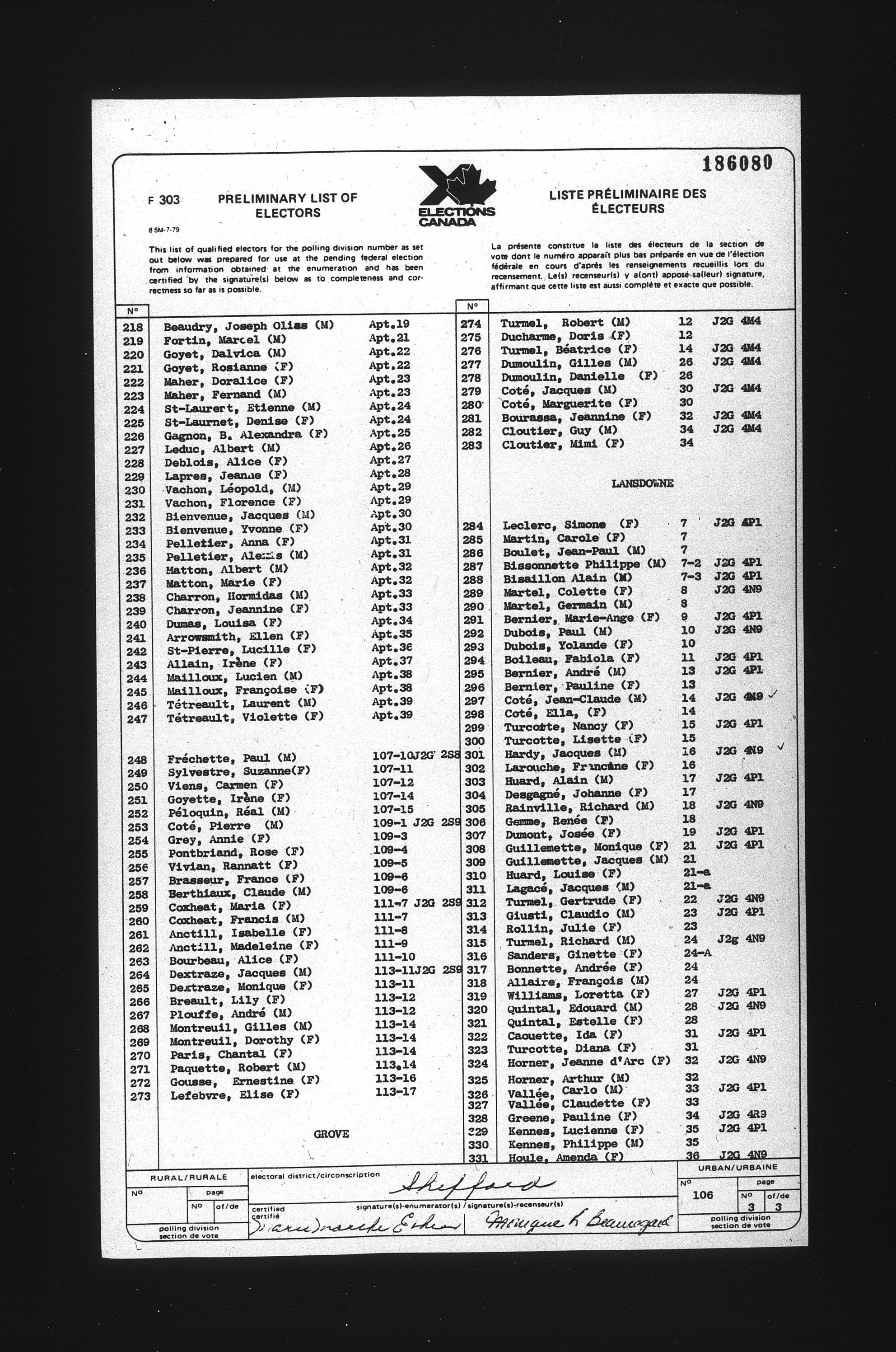 Preliminary voters' lists : Québec, 1984 - T-22079