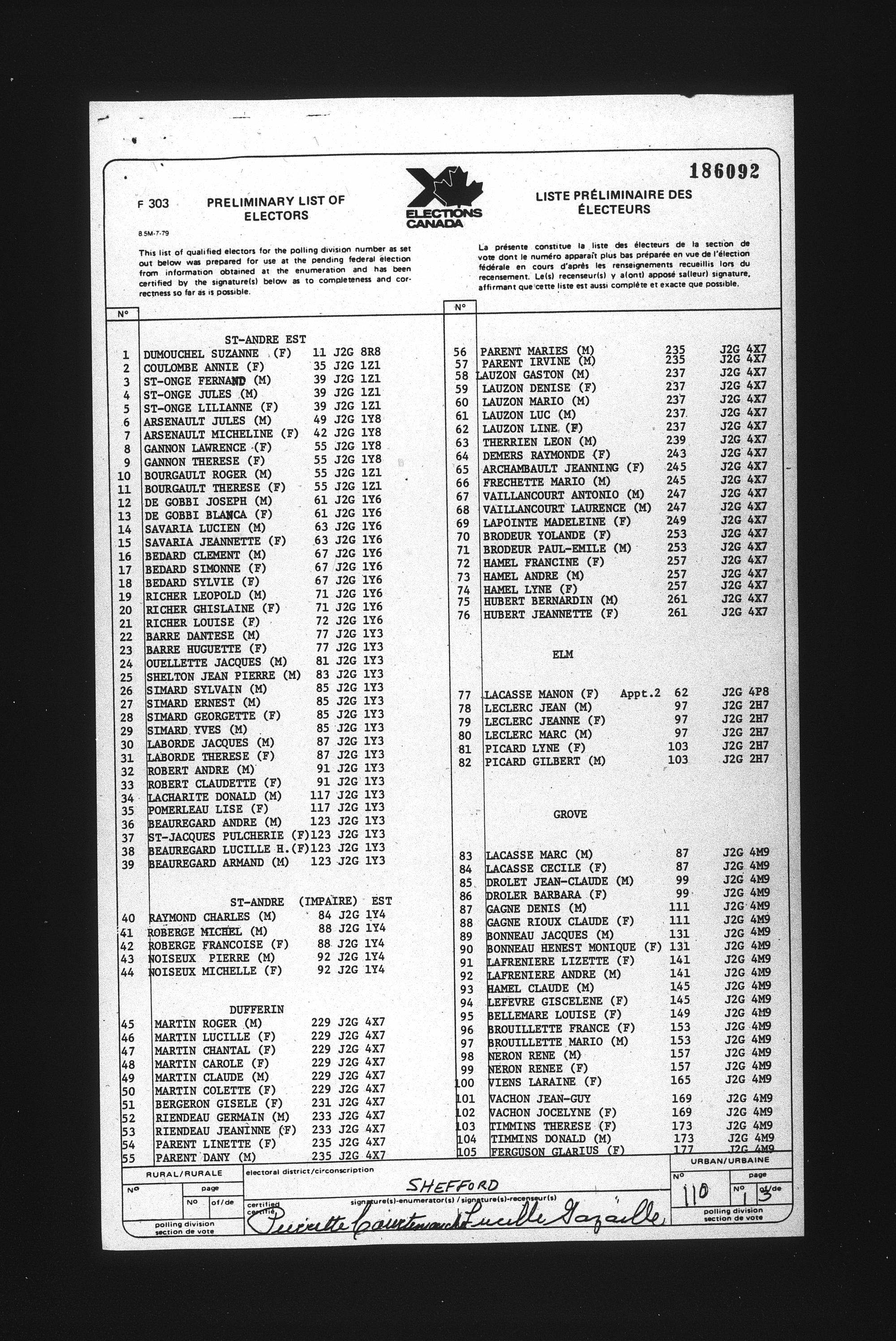 Preliminary voters' lists : Québec, 1984 - T-22079