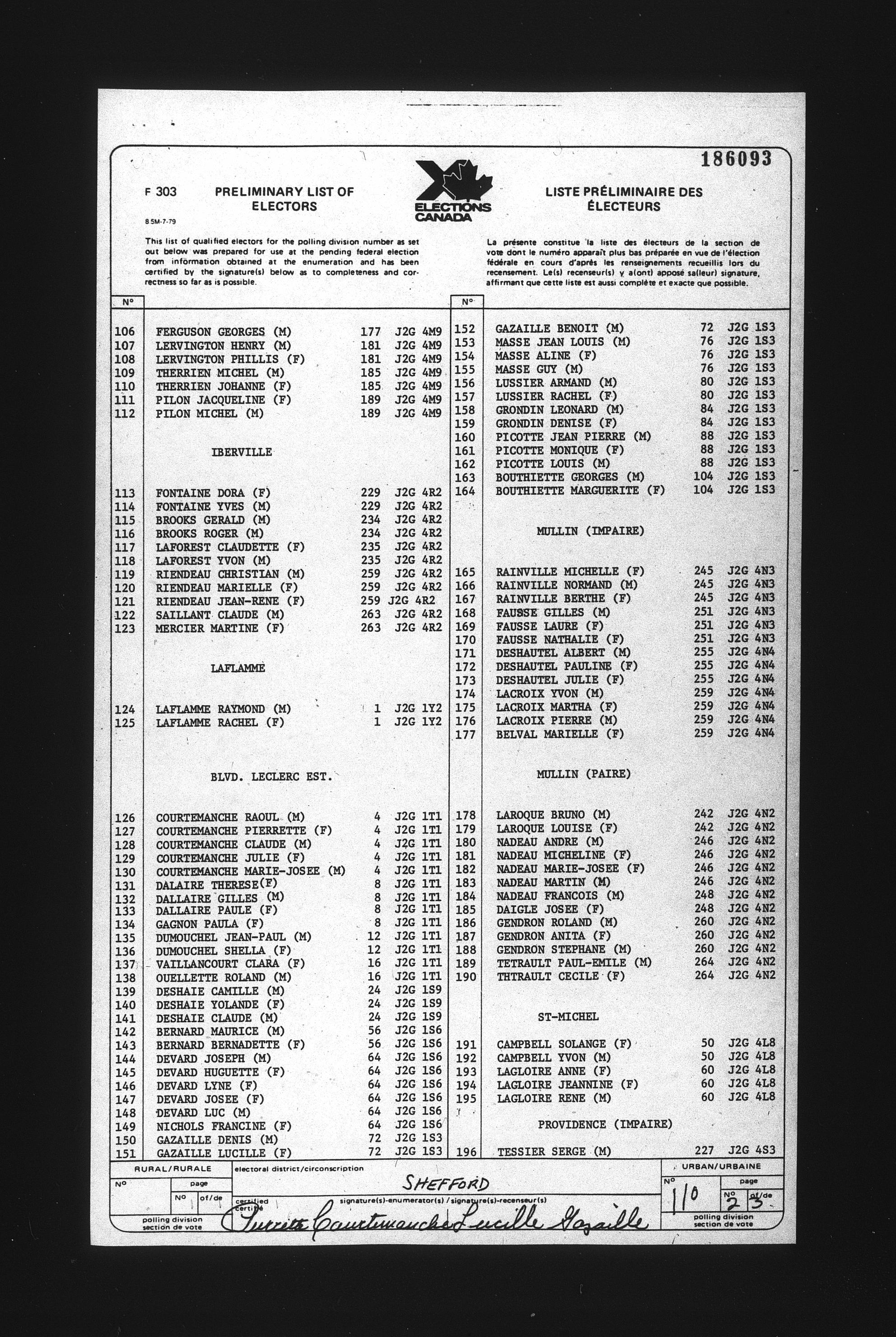Preliminary voters' lists : Québec, 1984 - T-22079