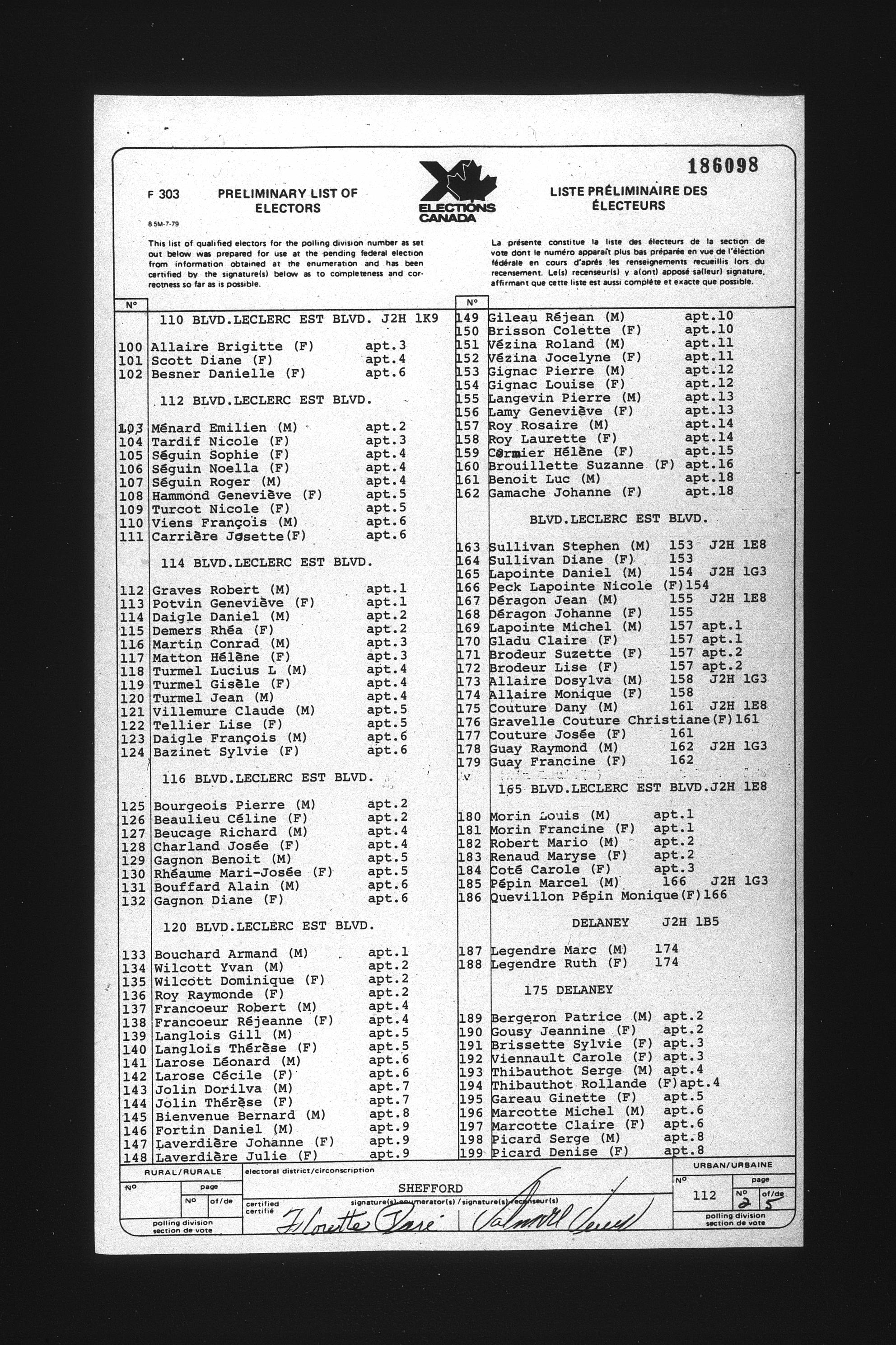 Preliminary voters' lists : Québec, 1984 - T-22079